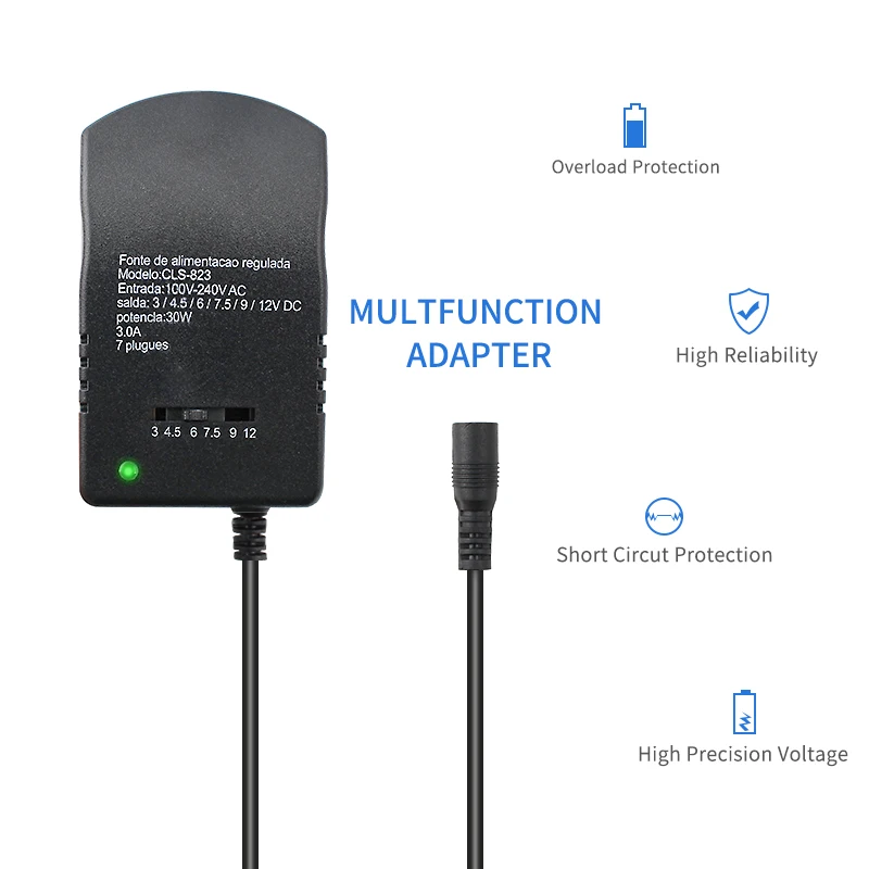 Keep your electronics running efficiently with this adjustable power supply. Designed for compatibility and safety, it’s perfect for replacing or upgrading your current power source. Once you have this adapter, you'll enjoy the convenience of adjustable voltages and multiple connectors, saving you time and money. Its robust safety features prevent damage to your devices, giving you peace of mind. Whether for professional or personal use, this power adapter ensures your electronics always have the right power. Experience the difference it can make in your setup—trust in this high-quality, multi-voltage power solution.