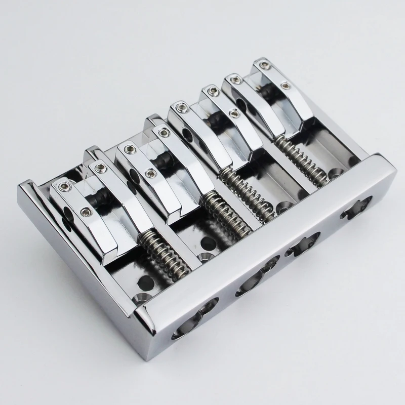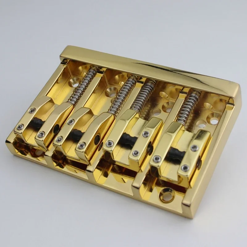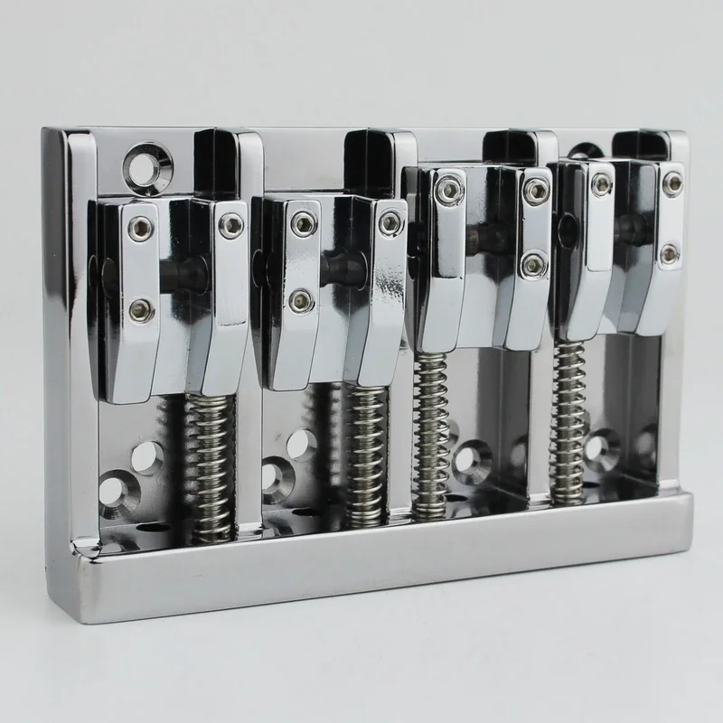 Experience the ultimate in customization and durability with this adjustable four-string bass bridge. Designed to fit a variety of bass guitars, it features five precisely adjustable saddle positions for different chord distances. Made from high-quality metal, it boasts a sleek matte black finish for a modern and professional look. The contrasting silver-colored coiled springs provide both visual appeal and functional flexibility, allowing you to fine-tune string height and tension effortlessly. Its minimalist yet rugged design ensures high performance and stability, making it the ideal upgrade or replacement part for serious musicians. Whether you're customizing your instrument or repairing an existing one, this bass bridge guarantees precision, strength, and aesthetic appeal for your musical setup.