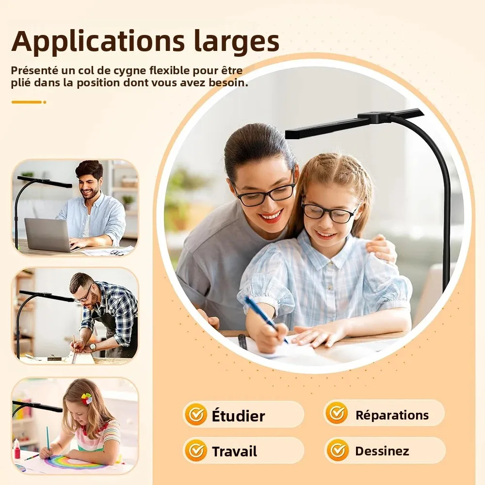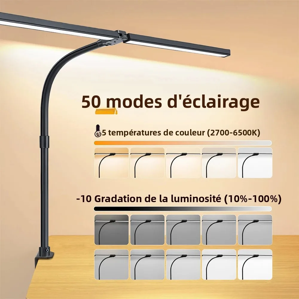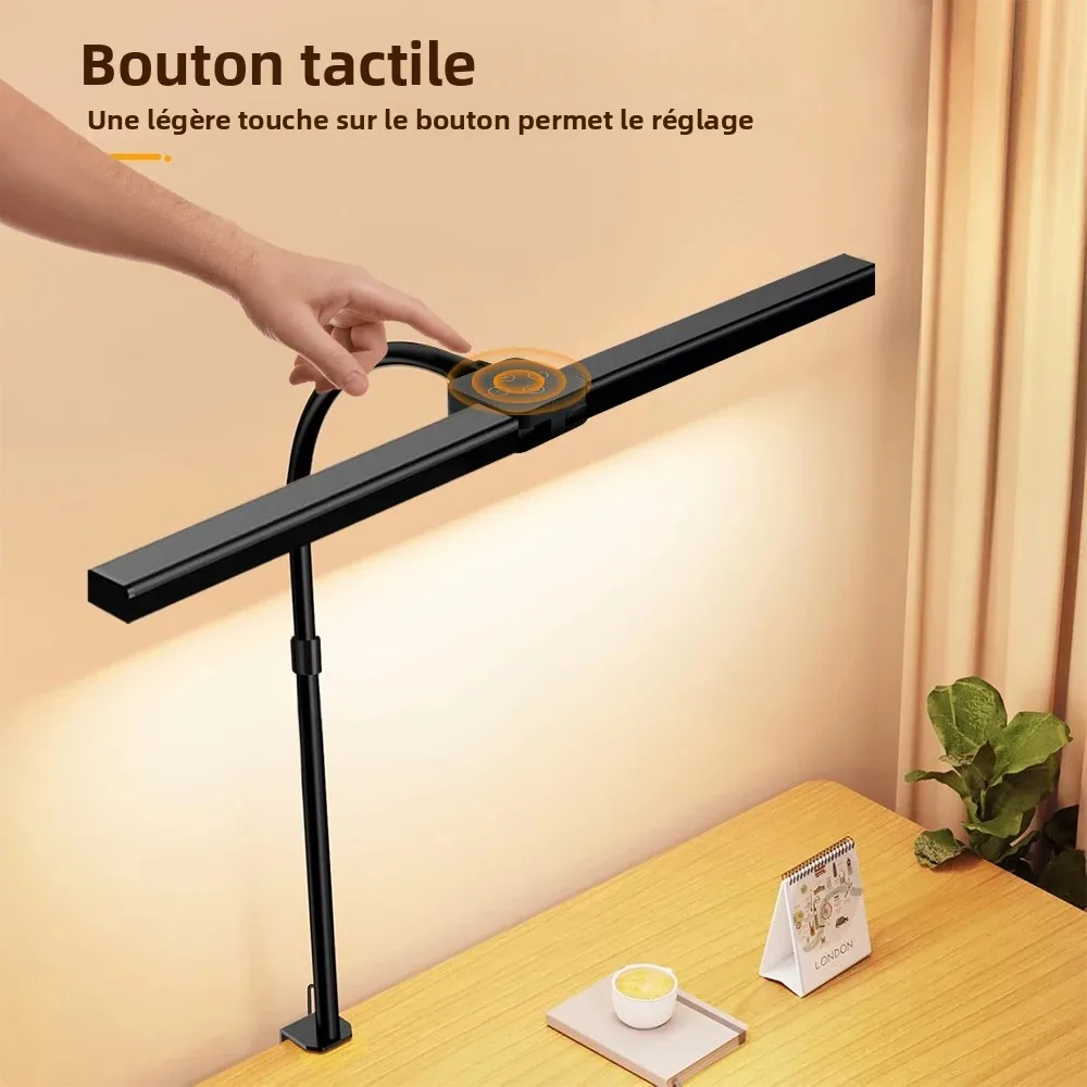 Experience a bright, adaptable workspace with this modern LED desk lamp. Its sleek, elongated design features an 80 cm adjustable gooseneck arm, providing flexible positioning for optimal illumination. Equipped with 280 advanced LED beads, it delivers approximately 1000 lumens of luminous flux at full brightness, ensuring your workspace is evenly lit without dark spots. The lamp’s body, crafted from durable aluminum alloy with ABS and PC components, combines style and resilience. Controlled via touch and remote, it offers 10 adjustable brightness levels and 5 color temperature settings from warm 2700K to cool 6500K (±275K). Its built-in smart sensor adjusts brightness based on ambient light, protecting your eyes from flicker and glare, making it ideal for creative or professional environments.