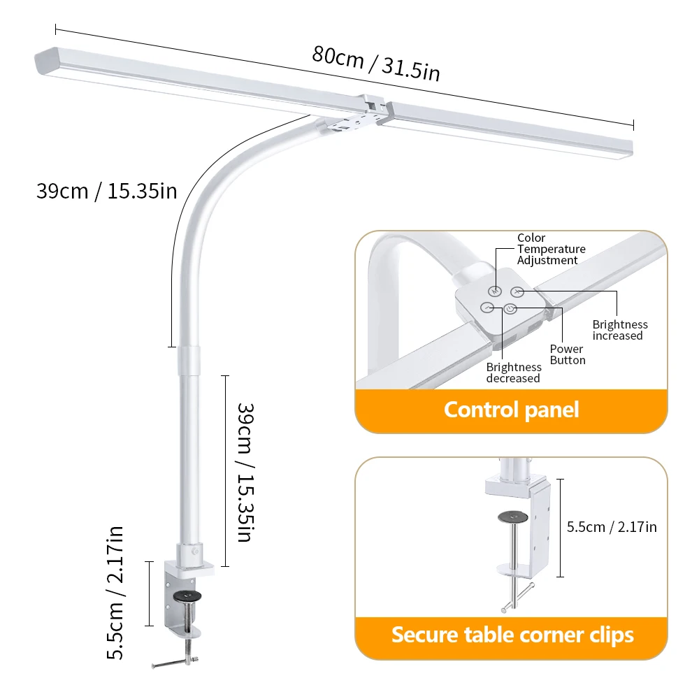 - Wide 80 cm adjustable gooseneck arm allows flexible angles for precise lighting coverage across your workspace.