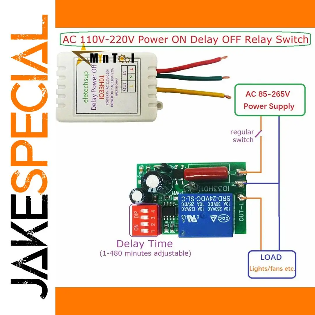 Imagine effortlessly managing your household or industrial devices with this this adjustable AC timer relay. Designed to operate with voltages between 110V and 220V, it offers reliable performance and versatile delay settings ranging from 1 to 480 minutes. The sleek, compact white plastic housing combines durability and a modern aesthetic, making installation seamless in any environment. Clear labels and organized internal circuitry ensure straightforward wiring, while the colorful wires add a vibrant touch. Its LED indicator provides real-time status updates, so you always know when your devices are active or in delay mode. Whether controlling fans, humidifiers, or lights, this relay enhances automation with precision and ease.