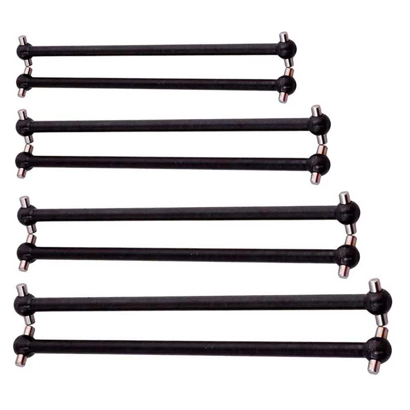 Imagine smoothly powering your RC car with this sleek set of black drive shafts, designed for precision and durability. Their uniform black finish offers a modern, professional look that complements any custom build. The shafts are adjustable in length from 85.5mm to 123.5mm, allowing perfect fitment for your specific 1:8 scale four-wheel-drive model. With high-strength universal joint connectors, these shafts provide flexible movement essential for high-performance driving. Installing these upgrade parts not only enhances your vehicle’s reliability but also gives you peace of mind during intense races or off-road adventures. Whether you're a hobbyist or a serious enthusiast, this set promises both style and functionality, ensuring your RC car stays in top condition on any terrain.