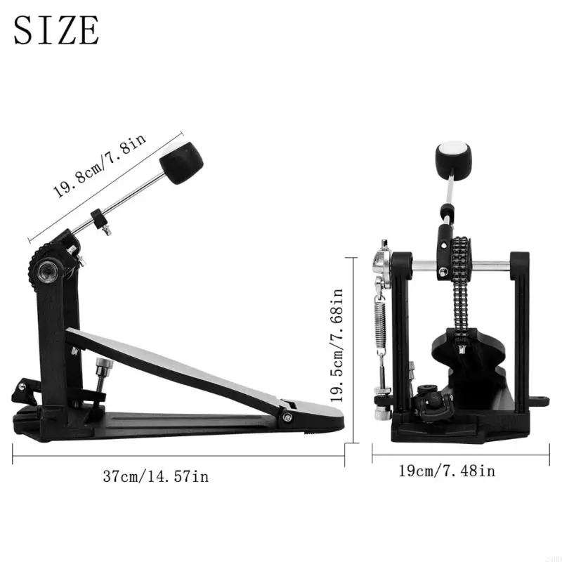 Enhance your drumming experience with this professional-grade double-chain bass drum pedal. Crafted from durable metal and measuring approximately 37 x 19 x 19.5 cm (14.57 x 7.48 x 7.68″), its sleek black finish with silver accents exudes an industrial, modern aesthetic. The elongated, slightly curved footplate with textured surface provides excellent grip for secure foot placement. Its dual-chain drive system ensures smooth, responsive power transfer while the adjustable tension spring allows you to fine-tune the pedal's responsiveness. The non-slip rubber base guarantees stability during intense performances, whether you're in the studio, on stage, or practicing. The ergonomic design and adjustable footboard positioning screws make it comfortable for extended play sessions. This pedal’s versatile compatibility makes it perfect for both acoustic and electronic drum kits, elevating your rhythm precision and control with every strike. Whether practicing or performing, this pedal is your reliable partner for consistent, powerful bass drum hits.