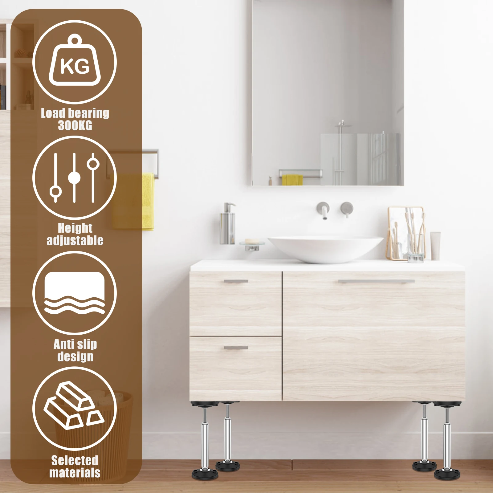 These versatile, high-capacity telescopic support rods are crafted from stainless steel and aluminum alloy, supporting up to 300kg each. Available in three adjustable height ranges—25-37cm, 30-45cm, and 38-52cm—they feature a sleek, metallic silver finish complemented by black plastic and nylon bases for enhanced stability. Designed to support cabinets, sinks, wardrobes, tables, and shelves, their central screw locking mechanism allows simultaneous extension or retraction at both ends for precise height adjustment. Their modern industrial aesthetic combines durability and functionality, making them ideal for preventing furniture tipping and movement during earthquakes in residential or commercial settings.