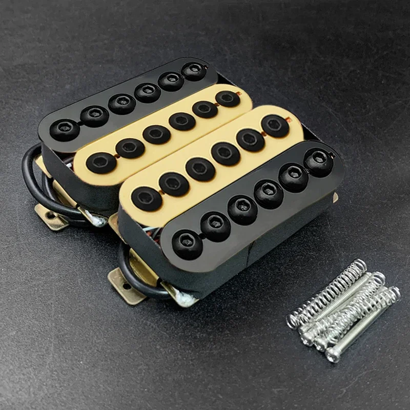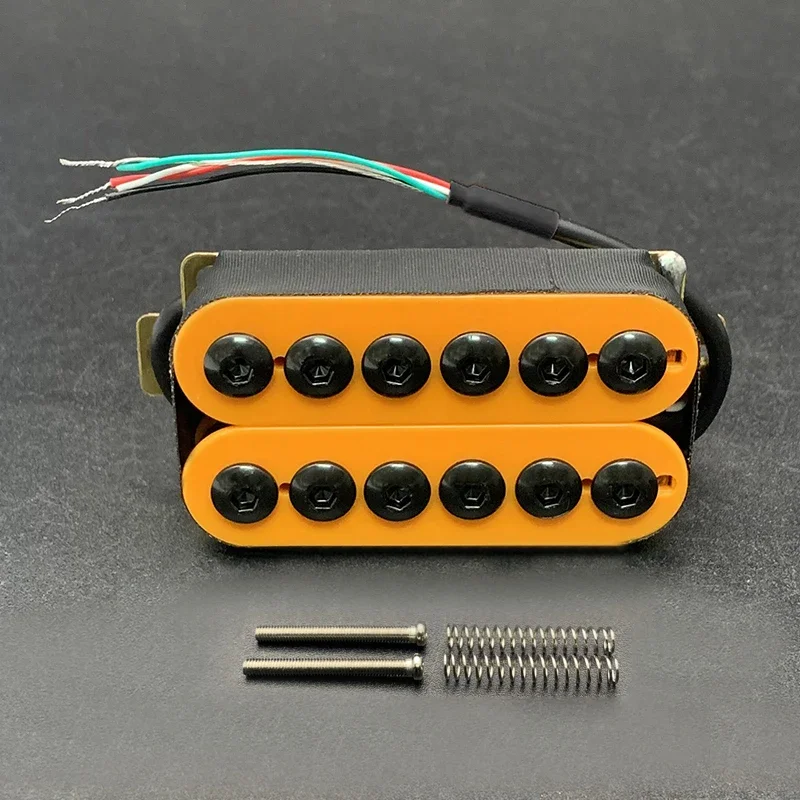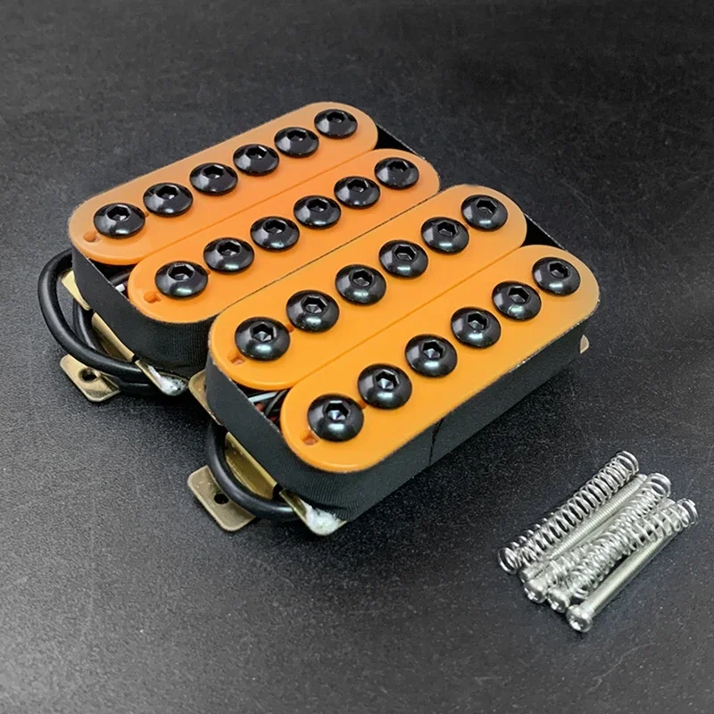 Elevate your electric guitar's sound with this Adjustable Metal Double Coil Electric Guitar Pickup. Perfect for both neck and bridge positions, these humbucker pickups offer a versatile tone profile combined with stunning aesthetics. Designed with a sleek blend of plastic and metal, they feature a stylish wooden bobbin and adjustable hexagonal pole pieces for personalized sound. With a resistance range of 7.5k to 15k, installation is made easy with the provided one 4 coil cable. Choose from a variety of colors, including Ivory, Orange, and Zebra designs, to match your guitar’s personality. This is more than a pickup; it’s an essential upgrade for your musical journey.