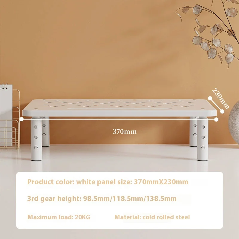 Experience a new level of ergonomic workstation efficiency with this adjustable computer rack, specially designed for monitors larger than 20″. Made with a sleek, minimalist aesthetic, the black or white platform features rounded edges and a matte finish that seamlessly integrates into any modern office setup. The surface is equipped with circular and elongated ventilation holes, optimizing heat dissipation and reducing weight for portability. Supported by four cylindrical, adjustable legs with threaded holes, this stand offers customizable height to match your ergonomic needs. Its sturdy construction ensures stability during daily use, helping to relieve neck and shoulder strain. Trust this versatile monitor holder to enhance your workspace and promote better posture for improved comfort and productivity.