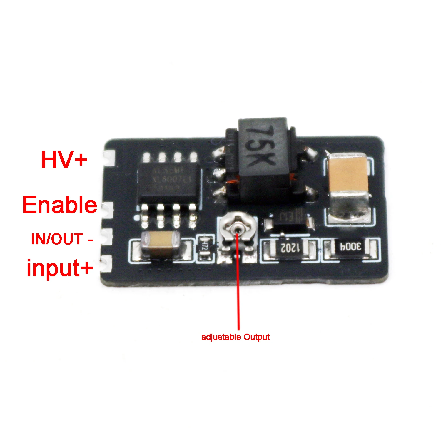 - Features a common ground configuration for simplified wiring and includes key pins: VIN (positive input), GND (common ground), EN (enable), and VOUT (high-voltage output).