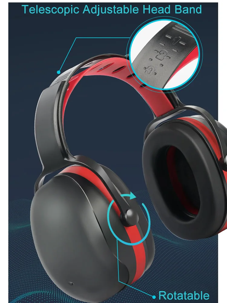 Experience superior hearing protection with these adjustable anti-noise earmuffs featuring a noise reduction rating (SNR) of 35dB, ideal for environments up to 105 dBA. Made with a durable ABS shell and sound-absorbing sponge, they boast a double-shell construction for enhanced protection. The double-layer adjustable headband ensures a comfortable fit for various head sizes, while the 360-degree rotatable ear cups allow for easy storage and a snug fit. Available in sleek black, vibrant blue, and bold red, these earmuffs are perfect for work, study, shooting, woodworking, and construction, combining durability, comfort, and effective noise reduction in one stylish design.