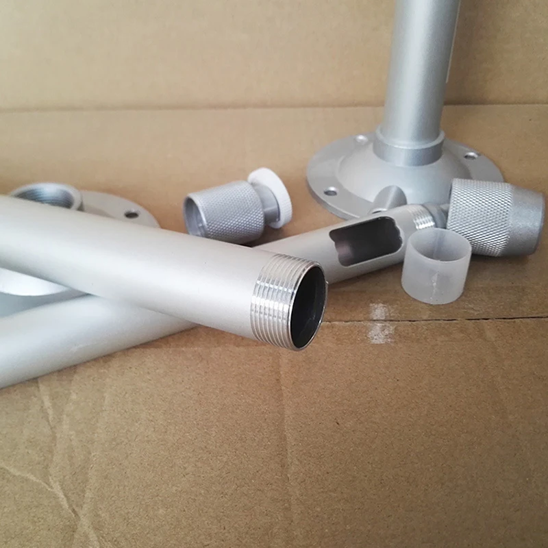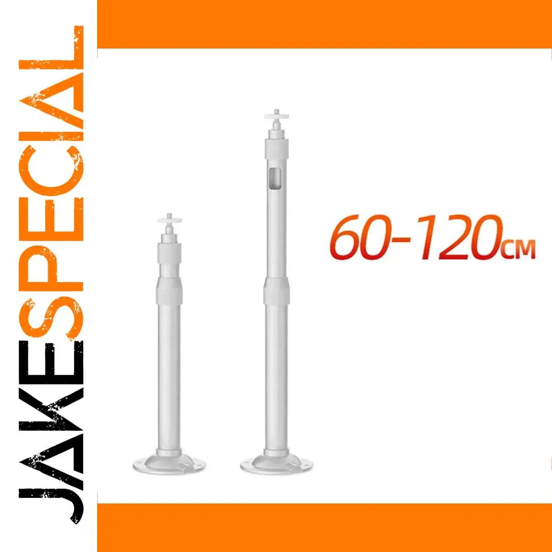 Experience the perfect blend of functionality and sleek design with this adjustable ceiling mount bracket. Crafted from durable aluminum alloy with a smooth, spray-painted off-white finish, it offers a modern, minimalist aesthetic. The telescopic pole extends from 60cm to 120cm, allowing you to customize the height easily for optimal viewing or projection. Its sturdy construction ensures stability whether installed indoors or outdoors, with a wide 10.5cm diameter base for firm attachment. The mount features a threaded screw component for secure ceiling attachment, while the telescopic design provides effortless adjustability. This versatile bracket is ideal for supporting projectors or monitors in professional or personal settings, combining reliable engineering with a clean visual appeal.