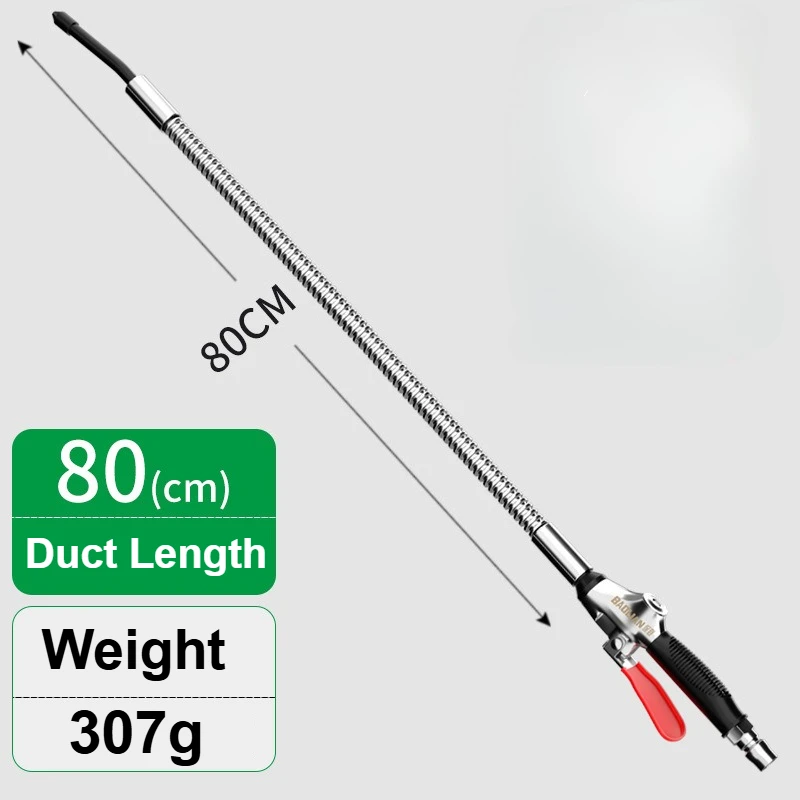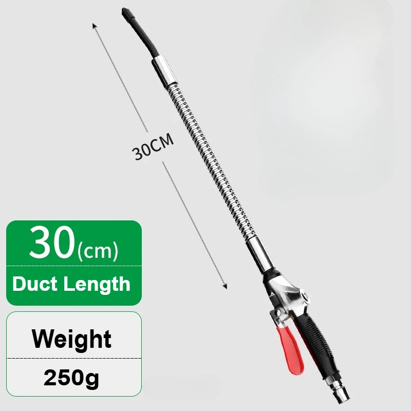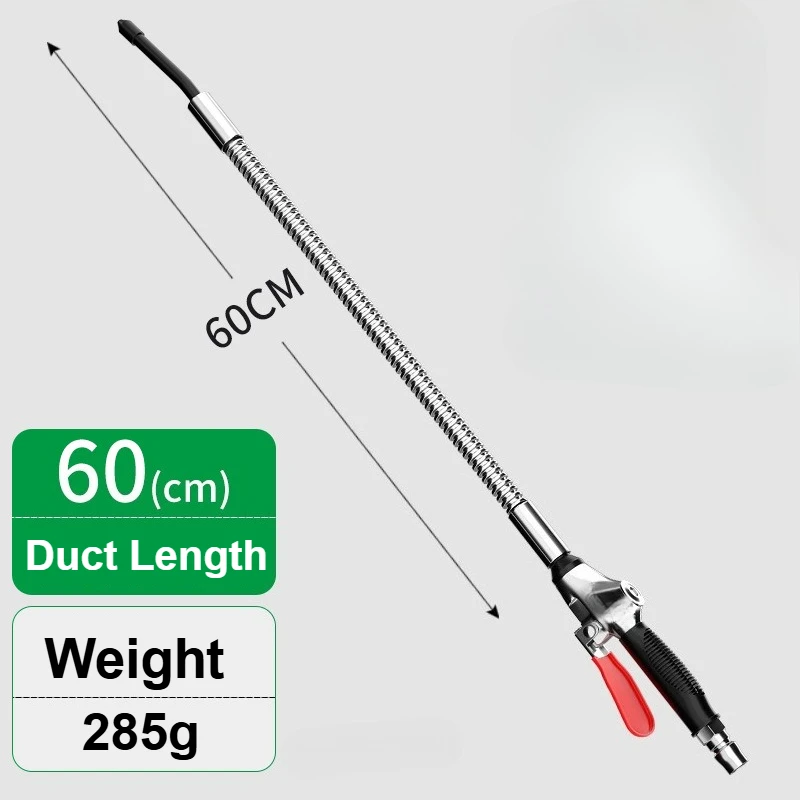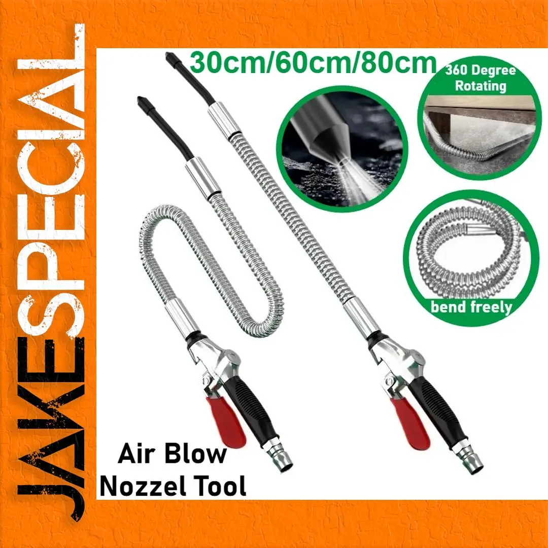 Experience superior dust removal with this 360-degree rotating air blow nozzle tool, designed for versatile use in workshops, automotive interiors, and electronic equipment. Crafted from durable alloy and PU materials, it features an embedded flexible silver PU air hose that maintains optimal airflow. The nozzle extends to 30cm, 60cm, or 80cm, allowing precise reach into tight spaces. Equipped with a quick connection system for effortless setup and an anti-slip rubber-coated handle with a red trigger for comfortable, controlled operation, this high-performance tool easily adapts to multiple angles. Perfect for professionals and DIY enthusiasts seeking efficient, reliable pneumatic airflow solutions.