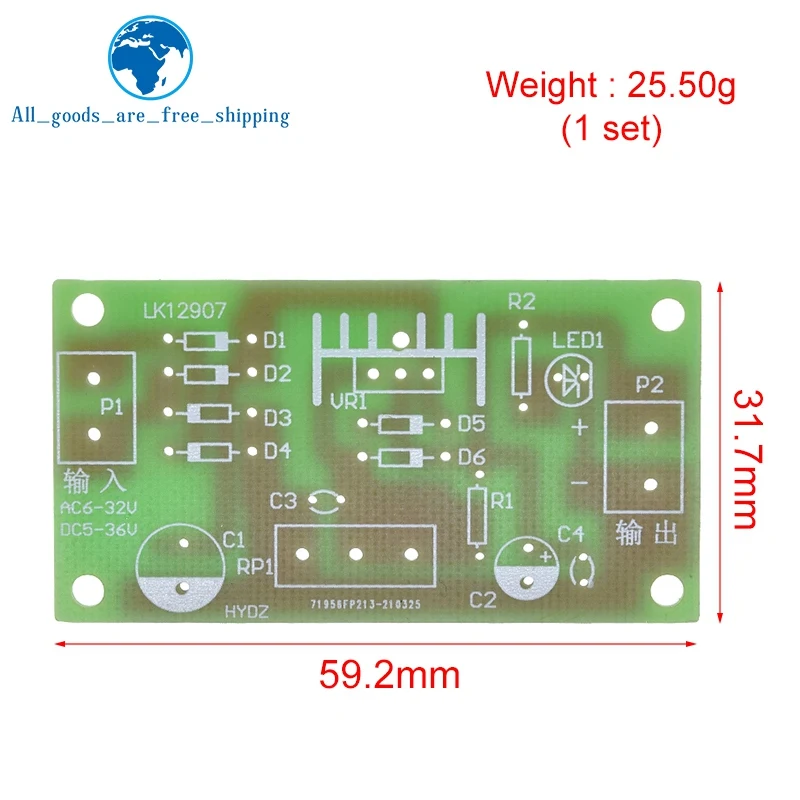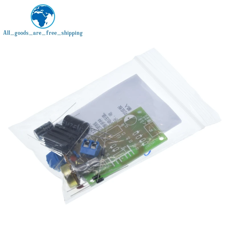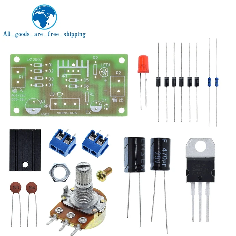 Experience precision with this 1/3-piece adjustable electronic power supply kit featuring the LM317 voltage regulator module. Designed for continuous adjustable DC power output, it supports input voltages up to 17V AC and 25V DC, with a maximum current dissipation of 1A. The kit includes a vibrant green PCB with clearly labeled components, a black heat sink for effective heat dissipation, and accessories like electrolytic capacitors, terminal blocks, and a potentiometer for easy voltage adjustment. Perfect for DIY projects, educational training, and sensor switch applications, this module’s minimalist, technical design ensures a reliable and organized setup, helping you confidently build and experiment with versatile power supply solutions.