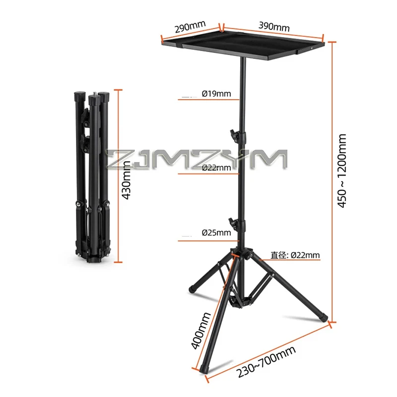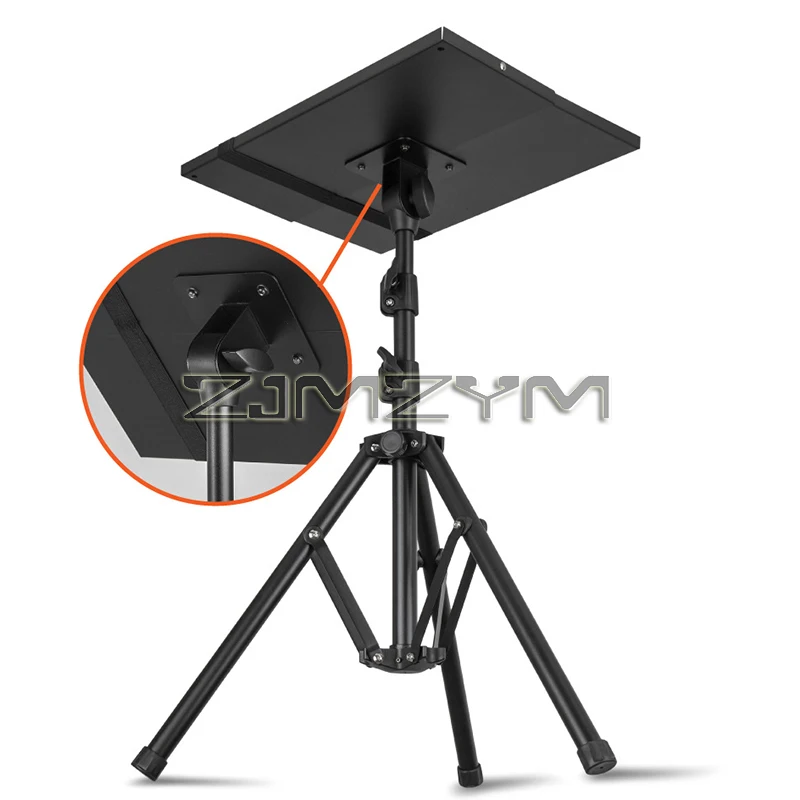 Experience the convenience and stability of this adjustable projector tripod stand, perfect for both tabletop and floor use. Designed with a sleek, modern finish, it features a telescoping pole that extends from 230mm to 1070mm, accommodating various projection heights effortlessly. The 400x400mm platform securely holds projectors up to a substantial size, with raised edges ensuring stability. The 180° tilt mechanism allows precise angle adjustments for optimal projection, while the fixed non-adjustable angle secured with a 1/4 aluminum nail provides additional security. Its reverse folding design makes transport and storage hassle-free. Crafted from durable materials, this stand offers professional-grade quality for presentations, meetings, or home theaters, blending impressive functionality with contemporary aesthetics.