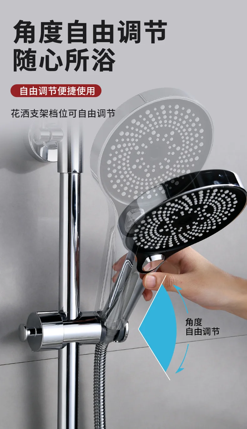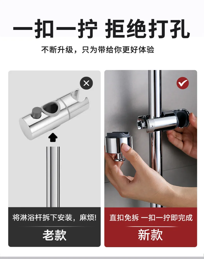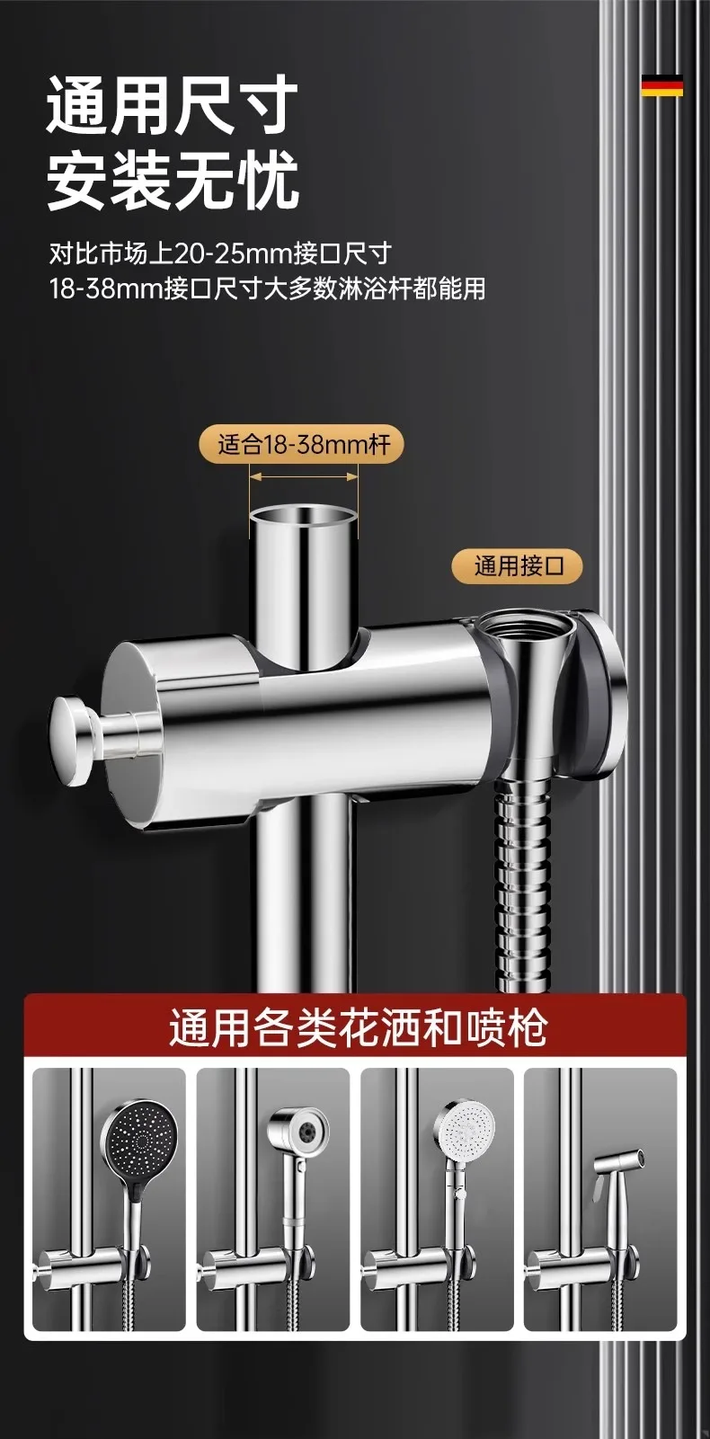 Enhance your shower experience with this adjustable hand shower bracket, compatible with slide bars between 16-27 mm in diameter. Crafted from chemical-free materials for safety, it features a sturdy, durable construction built for daily use. The sleek design includes a 360-degree rotating cradle, allowing for flexible water coverage and effortless adjustments. Available in modern black, grey, and silver finishes, this minimalist bracket seamlessly blends practicality with style. Its easy installation and seamless fit make it an ideal upgrade for any shower, providing reliable support and precise positioning for your hand shower, ensuring both comfort and convenience with every use.