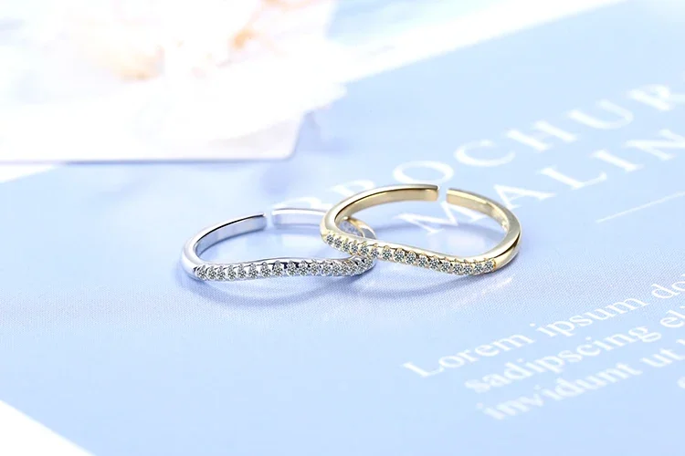 Experience timeless elegance with this subtly glamorous adjustable women's ring. Crafted from polished 925 sterling silver with a resilient gold-filled coating, it offers a luxurious look that endures daily wear. The slim, open-ended band gently curves to suit your finger perfectly, combining comfort with modern style. A continuous single row of gleaming zircon stones, set in a micro pave style, adds brilliant sparkle and sophistication. The round-cut zircons are securely held in prong settings, maximizing light reflection for maximum shimmer. Designed with a geometric pattern, this ring blends minimalism with elegance, easily transitioning from professional settings to special occasions. Its lightweight construction of approximately 1.3 grams makes it comfortable enough for all-day wear. Ideal for both casual and formal looks, its versatile design makes it great as a gift or personal indulgence for memorable moments.