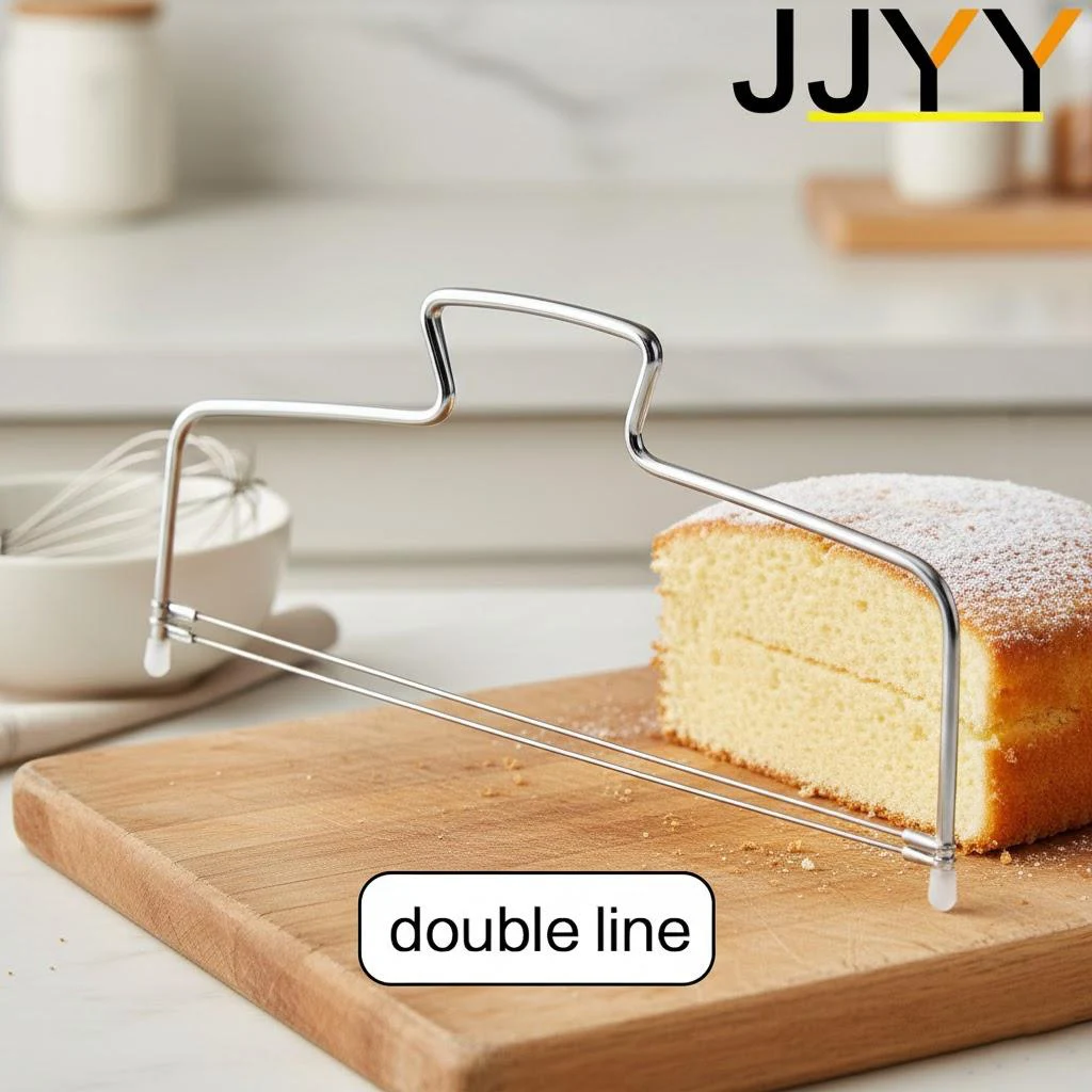 - The guide wires are thin and precise, emphasizing a sleek modern look while ensuring perfect, neat slices of baked goods.