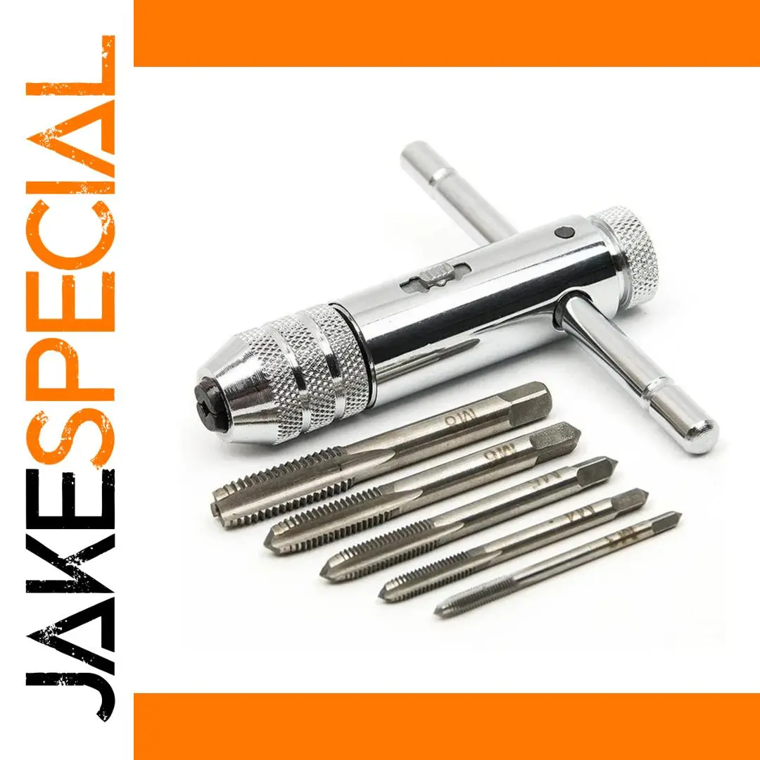 This Adjustable T-Handle Ratchet Tap Wrench Set is your new go-to tool for threading tasks. Imagine effortlessly achieving professional results with our efficient solution, designed to make your projects easier. The silver chrome-plated finish not only provides durability but also adds a touch of style to your tool collection. With five tap bits included, you'll be well-equipped to tackle a range of applications in your workshop or home project. Embrace the versatility of left and right-handed operation, and delight in the smooth ratcheting action that ensures precision every time.