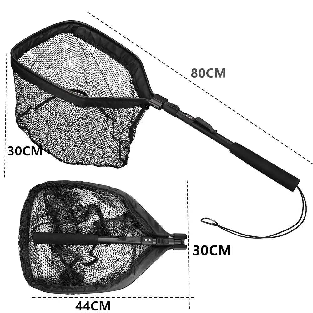 Experience convenience and durability with this foldable telescopic fishing landing net made from lightweight aluminum alloy. The handle extends from 55cm to 120cm via threaded extension with a secure locking mechanism, featuring an anti-skid, wear-resistant rubber grip. The 55cm diameter hoop is equipped with a gentle, lightweight polyester mesh that is non-absorbent and supports catches up to 10lb. Designed for versatile use in sea, river, lake, or boat fishing, this net folds compactly for easy storage in bags, gear, or rod lockers. Its sleek, modern matte black finish combines style with practicality, making it an essential tool for anglers seeking efficiency and reliability.