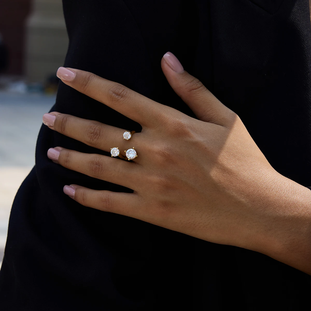 Imagine yourself wearing this beautiful adjustable women's ring—its sleek, modern design instantly elevates your look and complements every outfit. Crafted from high-quality stainless steel with a luxurious gold finish, it’s designed for durability and style. Whether for daily wear or special occasions, this versatile piece is a perfect addition to your jewelry collection. Its adjustable band ensures a comfortable fit, while the asymmetric cubic zirconia stones add a dazzling touch of sophistication. Gift yourself or someone special with this exquisite ring that balances contemporary style with enduring quality. Elevate your look and enjoy the confidence it brings!
