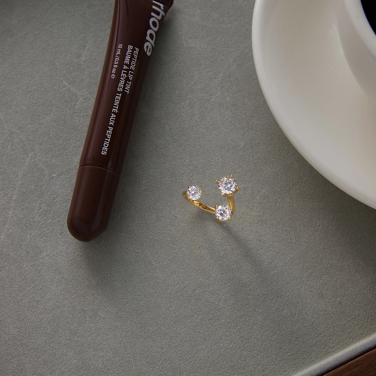 - Technical specifications include a stainless steel base, gold finish, prong-set cubic zirconia stones, and a flexible open band for easy adjustment and shared comfort.
