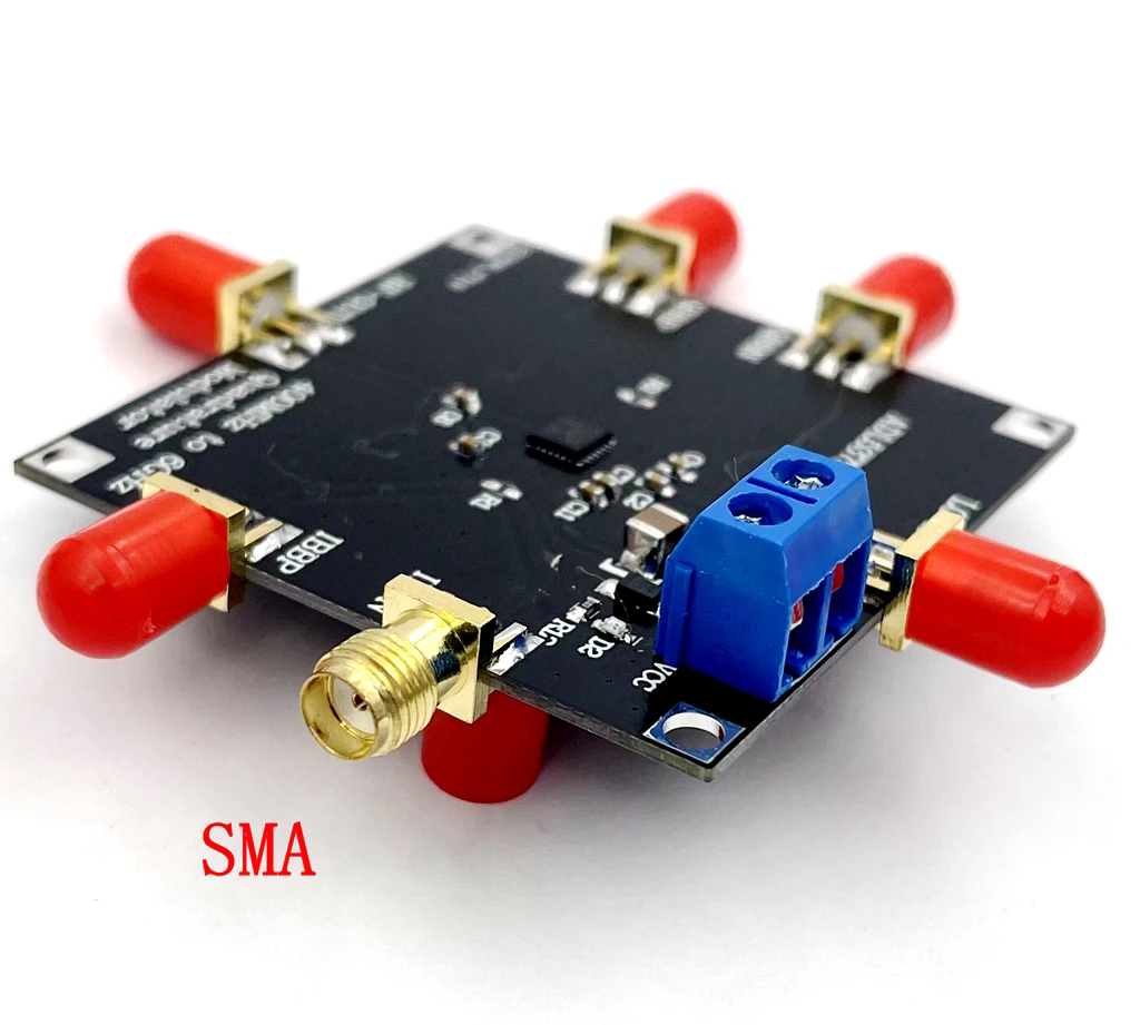 Imagine elevating your RF projects with this sleek, compact ADL5375 400M-6GHz IQ quadrature modulator mixer. Its modern matte black surface, accented by vivid red RF port covers, exudes a professional and high-tech aesthetic. The white printed labels ensure clarity of connection points, while subtle blue and red details highlight important functional components like the terminal block and indicator LED. This module’s minimalist design makes it stand out in any RF setup, offering both style and precision. With dimensions of just 5cm by 5cm, you gain a powerful and reliable tool that fits seamlessly into various applications. Perfect for RF ham radio amplifiers and broadband systems, this module combines sophisticated engineering with ease of integration for your projects.