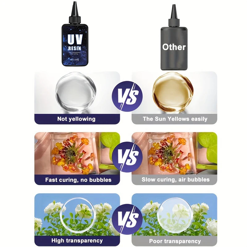 - Includes 200g of upgraded, hard, crystal-clear UV resin formulated with high-quality materials and antioxidants, ensuring excellent clarity and resistance to yellowing over time, perfect for detailed crafts.