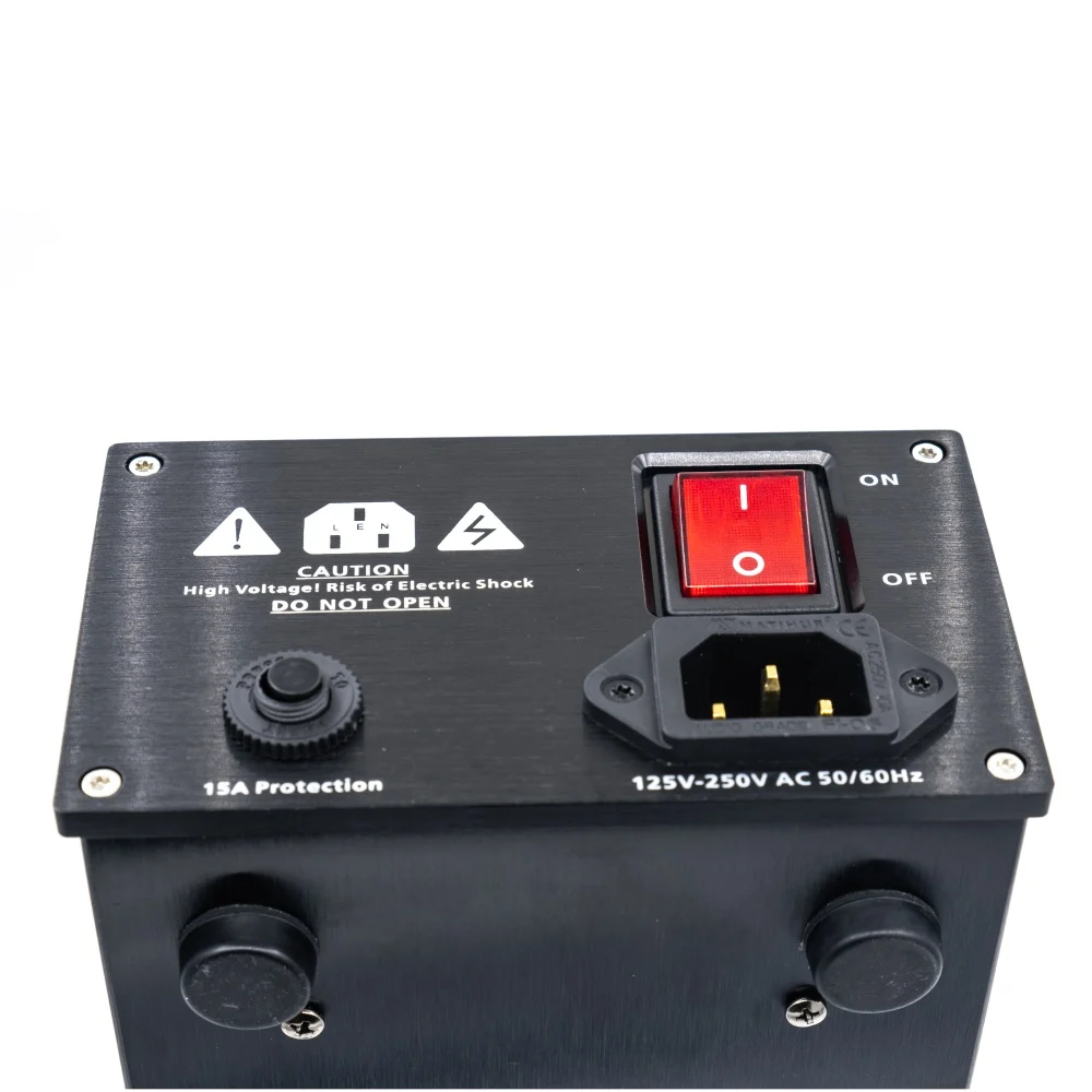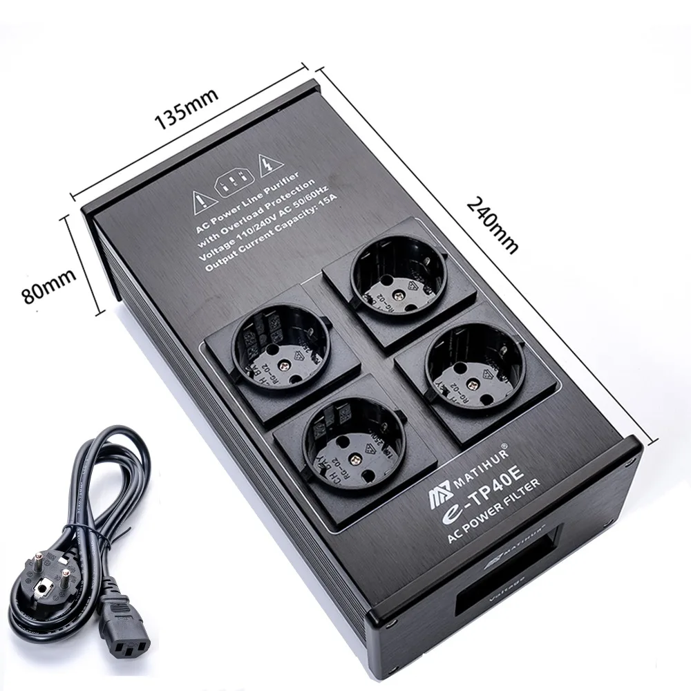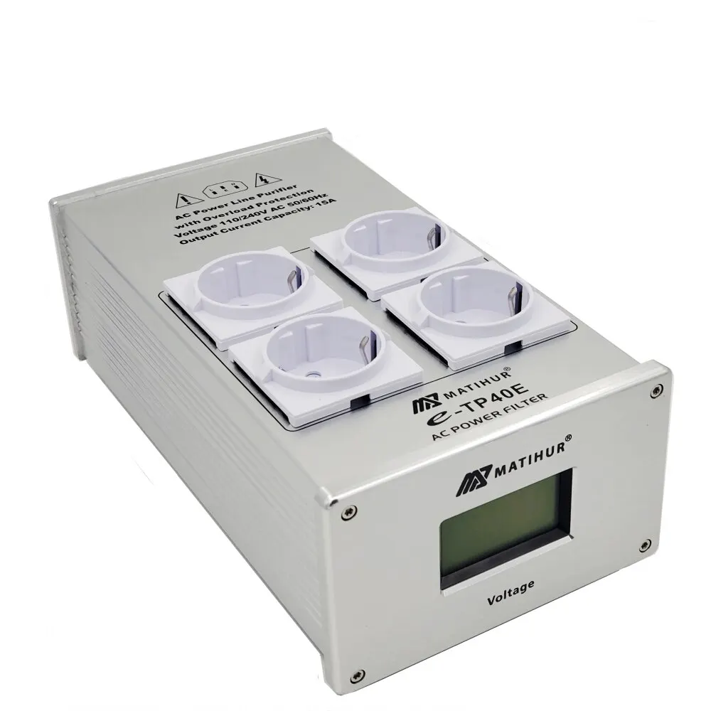Experience superior power stability with this compact aluminum power purifier, measuring 240mm x 135mm x 80mm and weighing 2.0 to 2.5 kg. Supporting AC220V at 50Hz, it delivers up to 3000W and 15A, featuring four high-quality EU outlets with phosphor bronze contacts and advanced filtering for minimal interference. An intuitive LED LCD display provides real-time voltage monitoring, while the overload protection automatically cuts off power if current exceeds 15A, ensuring safety and durability. Designed for residential and general-purpose use, it comes with a 1.2-meter extension cable and is available in sleek black or silver finishes, combining industrial robustness with modern functionality.