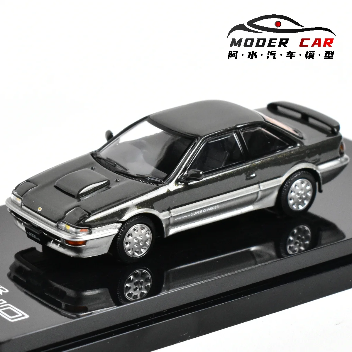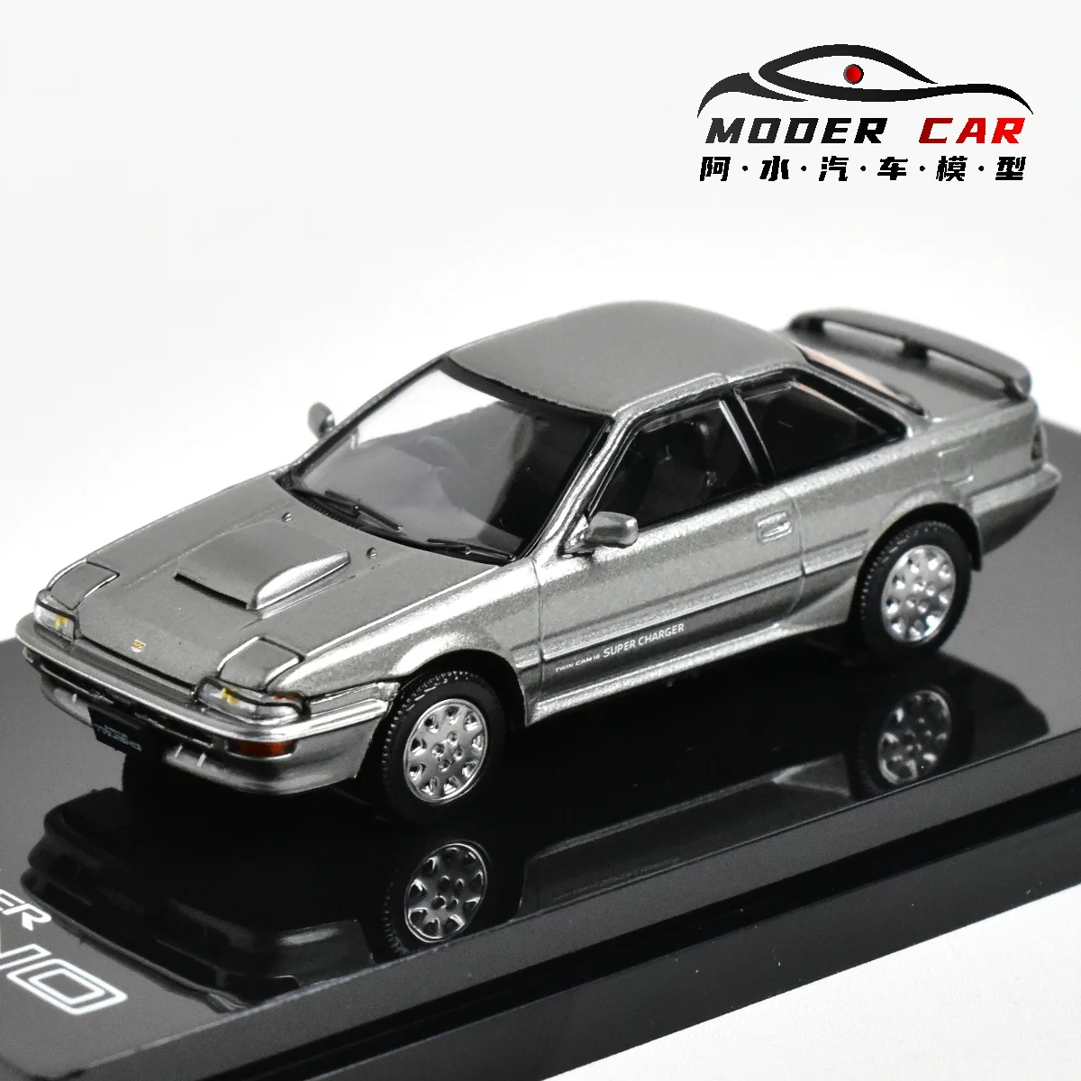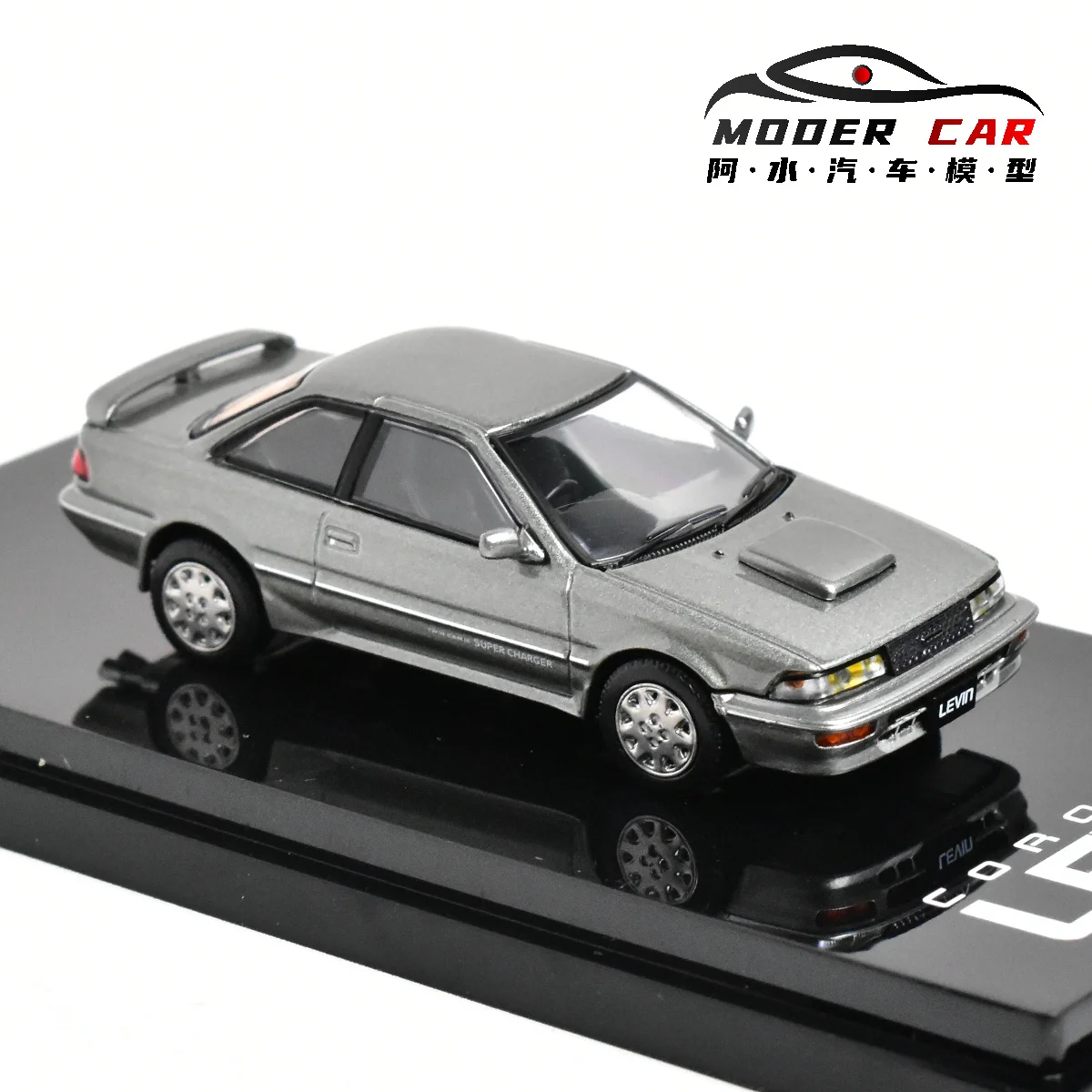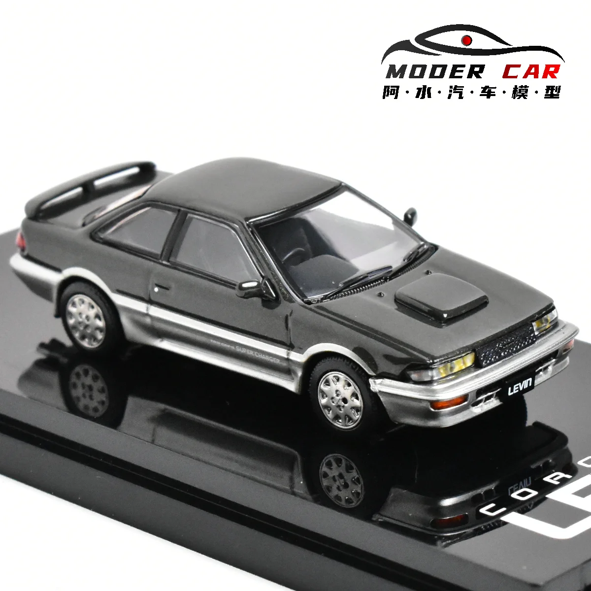 Imagine owning a meticulously crafted miniature of the iconic AE92 Levin or Trueno, perfect for display or collection. This 1:64 scale model combines precision engineering with realistic aesthetics, featuring a sleek, sporty two-door coupe silhouette finished in a sophisticated metallic dark gray or gunmetal color. Its smooth, contoured roof flows seamlessly into a gently sloped rear window, highlighting aerodynamic finesse. The detailed taillights, black-trimmed windows, compact side mirrors, and expressive body lines create an authentic look. Silver multi-spoke wheels with textured tires add a touch of realism. Crafted from durable diecast metal, this non-electric model exudes quality and style, making it a highly desirable addition for enthusiasts.
