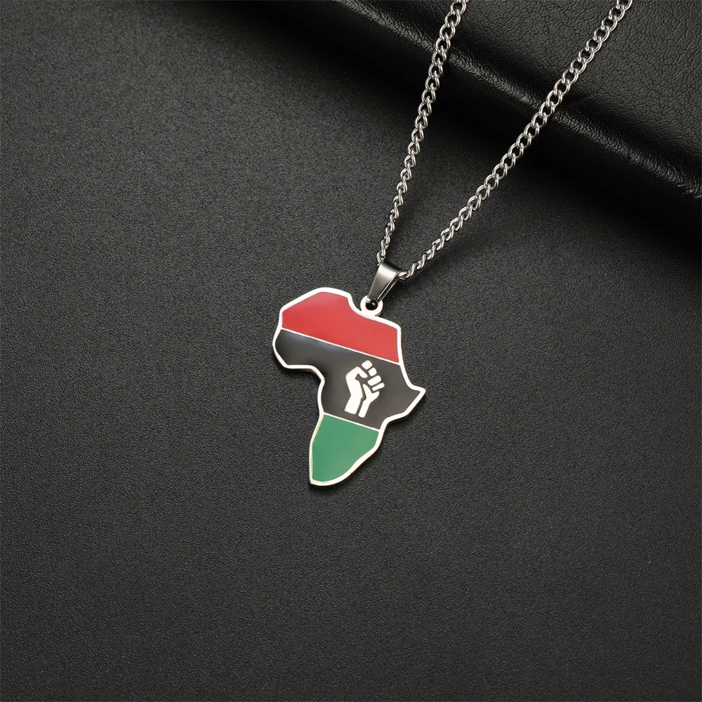 African Map Fist Pendant Necklace in Stainless Steel