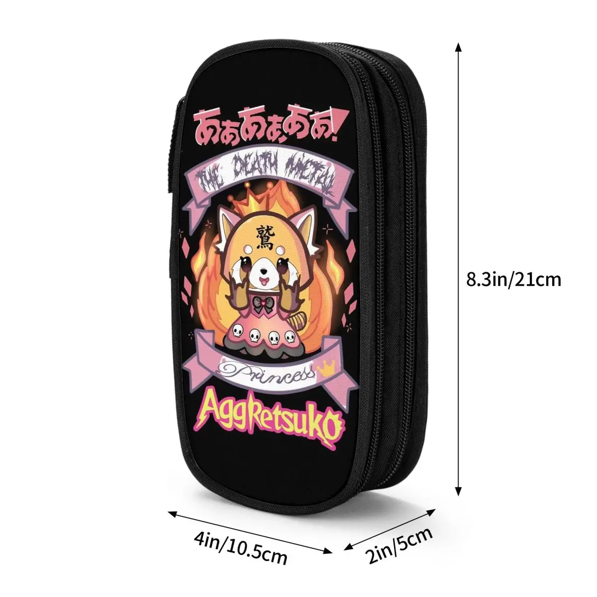 Transform your stationery game with this eye-catching Aggretsuko Pencil Case. Designed with a vibrant black exterior, it features a playful graphic of the iconic fox character dressed in a pink dress and crown, striking a fierce pose against stylized flames. This energetic design not only captures the fun of the Aggretsuko series but also provides practical storage for your pens, pencils, and more. Perfect for school or office use, its ample space and organized interior will keep your essentials secure and within reach. Add a quirky touch to your collection and let your personality shine!