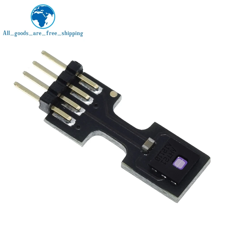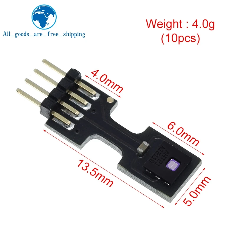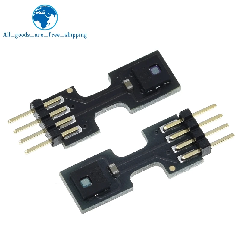 Experience accurate environmental monitoring with this sleek black temperature and humidity sensor module, designed to replace the AHT10. Crafted with a minimalist rectangular circuit board featuring five gold-plated connector pins, it offers a clean, modern aesthetic perfect for integration into microcontroller projects. The module showcases a small, square sensor with a light greenish-yellow opaque surface, adding a subtle contrast to the matte black finish. Its fine etched traces form delicate patterns across the surface, emphasizing precision and craftsmanship. Available in 1-piece or 3-piece configurations, this customizable device is ideal for accurate, reliable temperature and humidity measurements in a variety of environmental control applications.