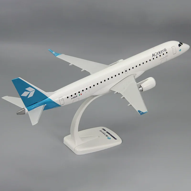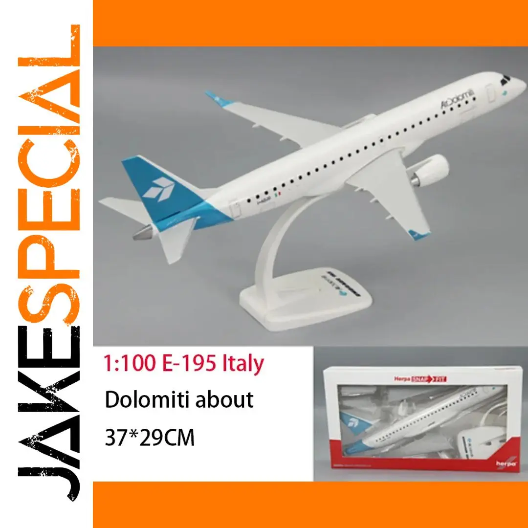 Experience the sophistication of aircraft design with this meticulously crafted 1/100 scale model of the E195 operated by Italy Air Dolomiti Airline. Measuring about 37 centimeters in length and 29 centimeters in wingspan, this model offers a realistic representation of the modern, streamlined aircraft. Its glossy white finish with vibrant blue tail fin and detailed engine nacelles captures the sleek aesthetic of the actual plane. The finely printed windows and airline branding enhance its authenticity, making it perfect for collectors and aviation enthusiasts alike. Designed for display, it elevates any setting—whether at home, in an office, or a bar—adding a touch of elegance and professionalism to your decor. This collectible piece is a testament to detailed craftsmanship and aviation admiration.