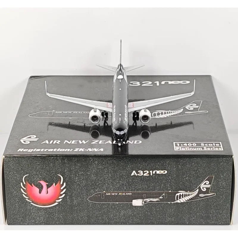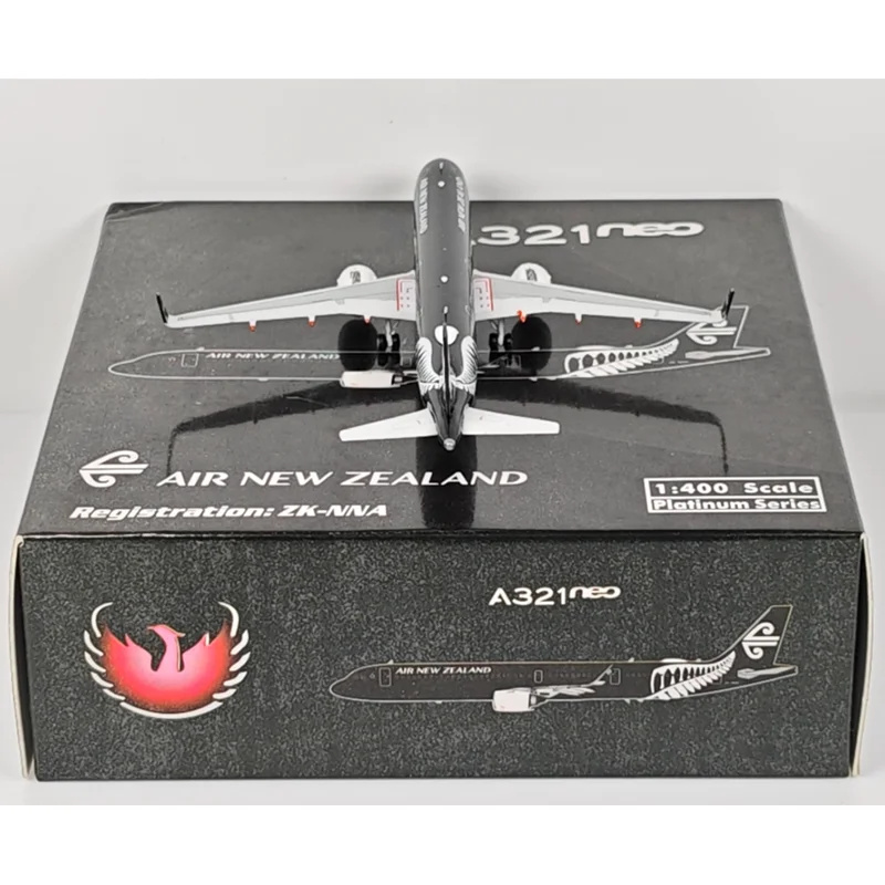 The Phoenix 1/400 Scale Air New Zealand A321neo ZK-NNA die-cast alloy model is a striking collectible featuring a sleek black finish with white tribal patterns inspired by Maori culture. Measuring 11.13 cm in length and an 8.95 cm wingspan, it is crafted from alloy and plastic for intricate details, including cockpit windows, flap and winglet nuances, and fixed landing gear. This model operates without batteries, making it a perfect decorative ornament for business gifts, home décor, or personal collections. Its delicate design may require glue for repairs if parts detach, emphasizing its collectible status.