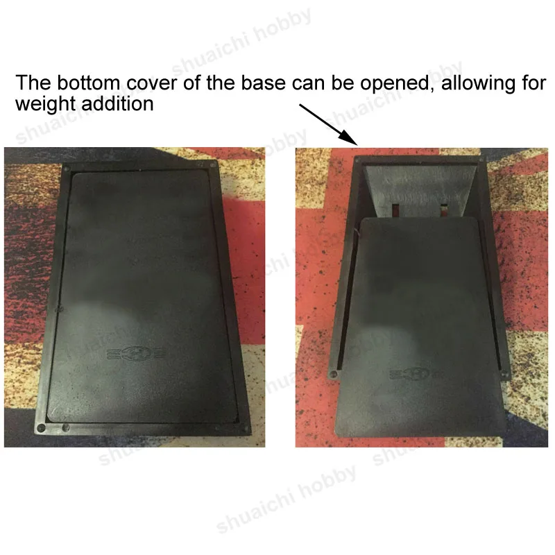 - The removable bottom cover of the base allows for weight addition to enhance stability during display.