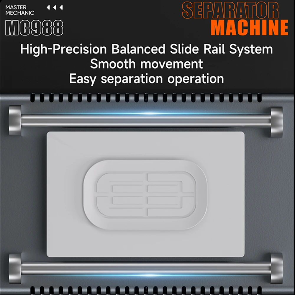 - Supports screens up to 10.5″, thanks to a high-precision, balanced slide rail system that guarantees smooth operation without deformation or jamming during separation.
