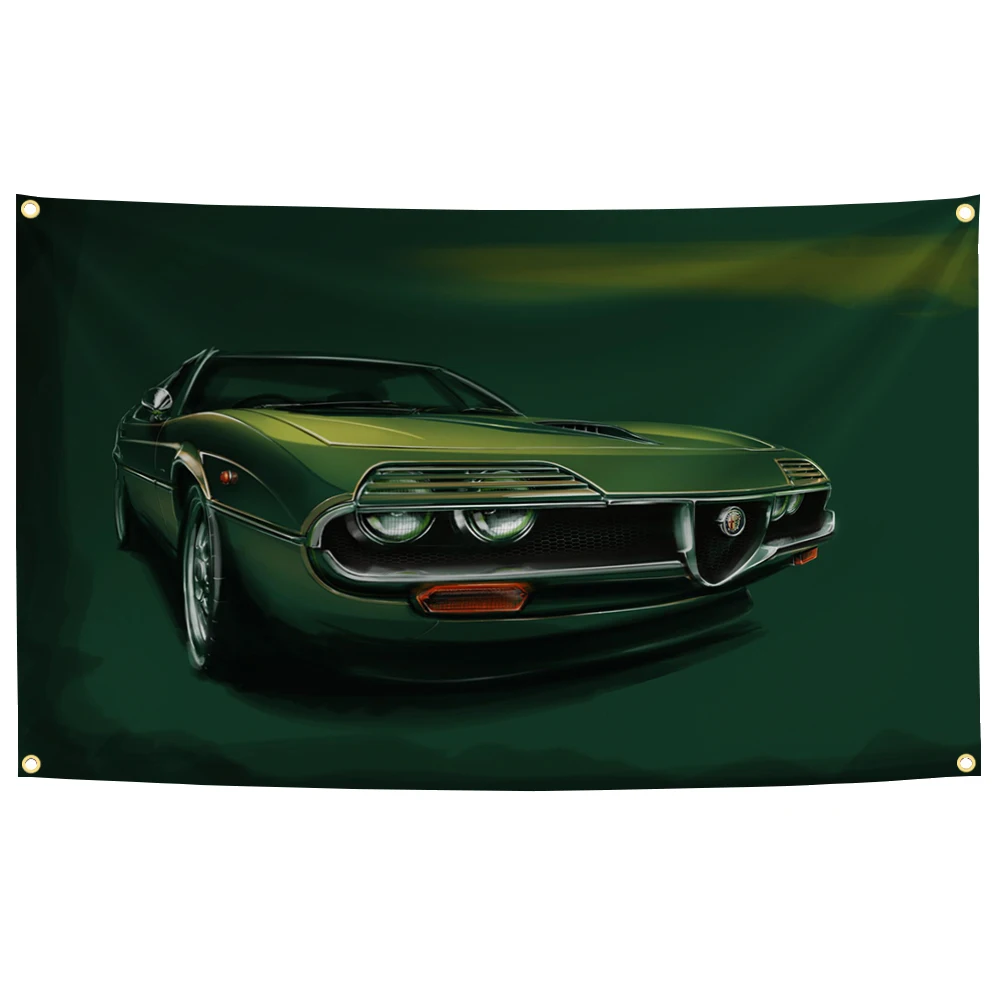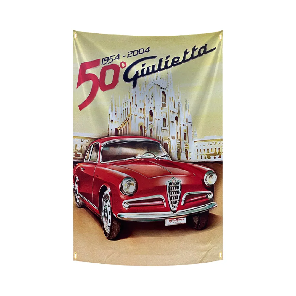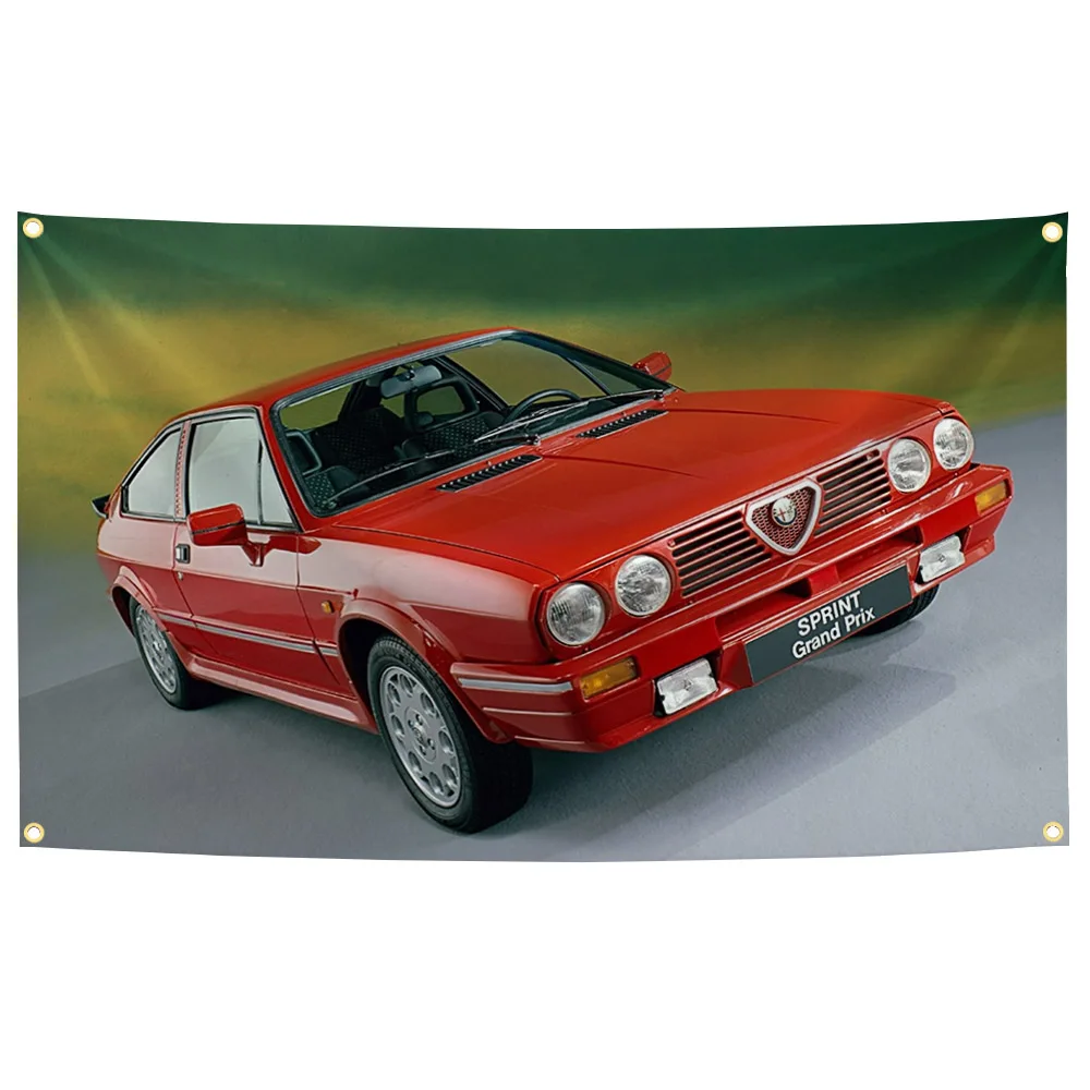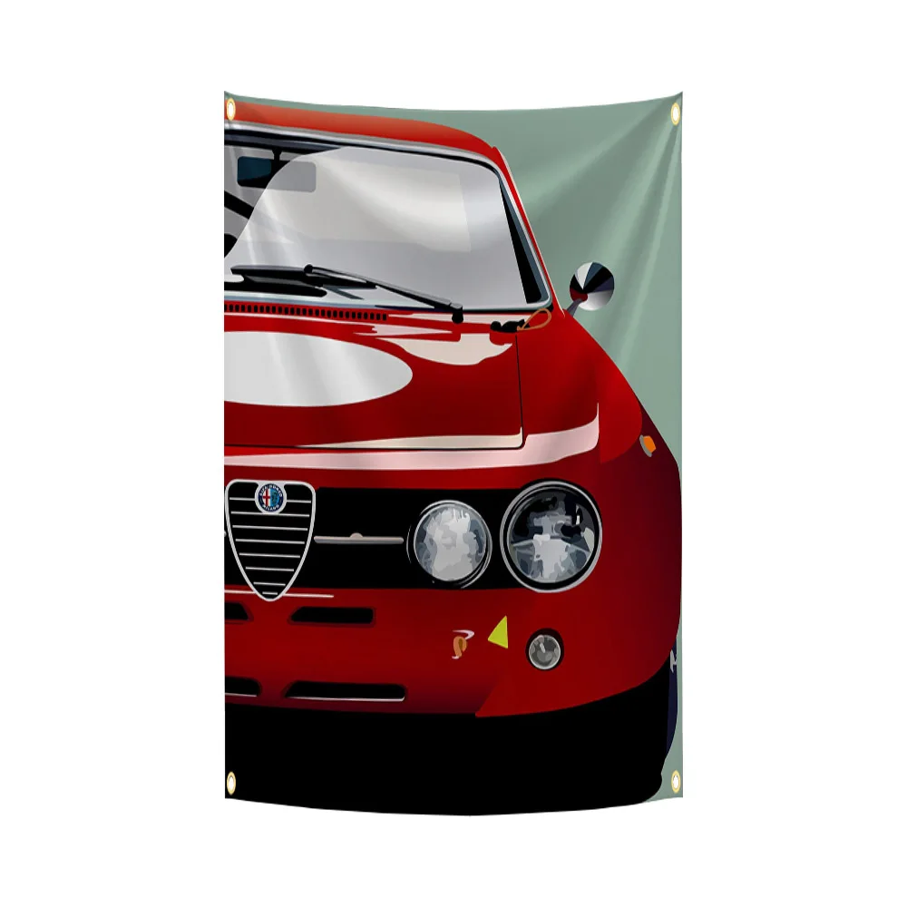Elevate your automotive collection or sporting events with this striking Alfa Romeo racing car flag. Its vibrant design and durable craftsmanship make it a perfect choice for passionate car lovers. Whether you're decorating your garage, displaying at racing events, or adding flair to your space, this flag promises to bring style and dynamism. Take this opportunity to own a symbol of classic racing elegance that you'll enjoy for years to come. Ready to elevate your decor and showcase your love for iconic cars? This flag is the perfect choice.