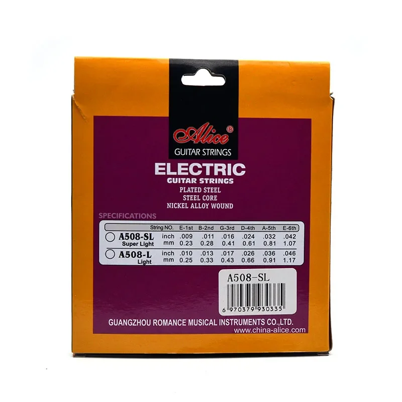 Experience the vibrant sound and smooth playability of this set of Alice A508 electric guitar strings. Crafted from high-quality nickel alloy with steel wire coating and a durable copper core, these strings ensure a clear, resonant tone for daily use. The super light gauge design features precise specifications: .009″ for the high E string, .011″ for B, .016″ for G, .024″ for D, .032″ for A, and .042″ for the low E string. Their bright, shiny metallic finish adds a sleek, professional aesthetic, while their lifespan and ease on fingertips make performing more enjoyable. Whether you’re practicing or recording, these strings deliver consistent tone and durability, inspiring your musical creativity every day.