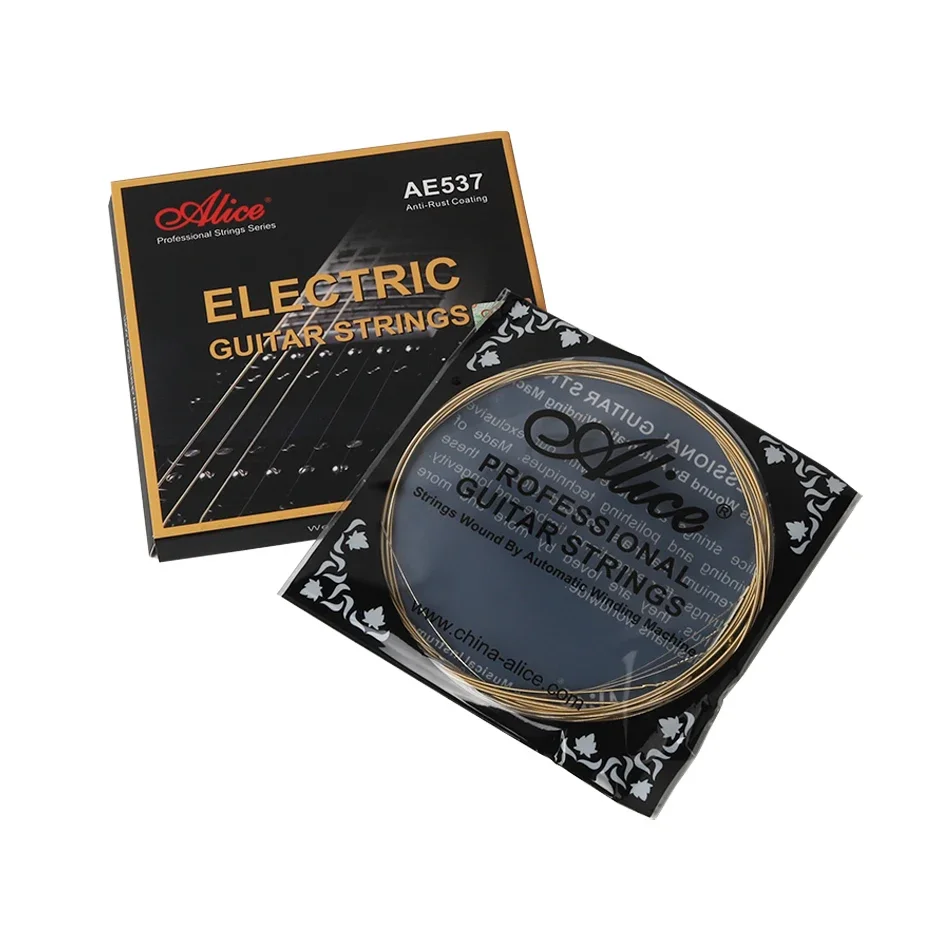 Experience exceptional sound quality and durability with the Alice Professional Strings Series AE536/AE537 Electric Guitar Strings Set. Featuring a new multipolymer anti-rust coating for prolonged life, these strings deliver brighter tone, delicate response, and transparency. Available in extra light, super light, and light gauges, they are perfect for artists seeking flexibility and reliability in their performance. The set includes six plated steel strings with a hexagonal core and iron alloy winding, ensuring excellent durability and consistent sound. Elevate your playing and enjoy the confidence that comes with premium construction and trusted craftsmanship from Alice.