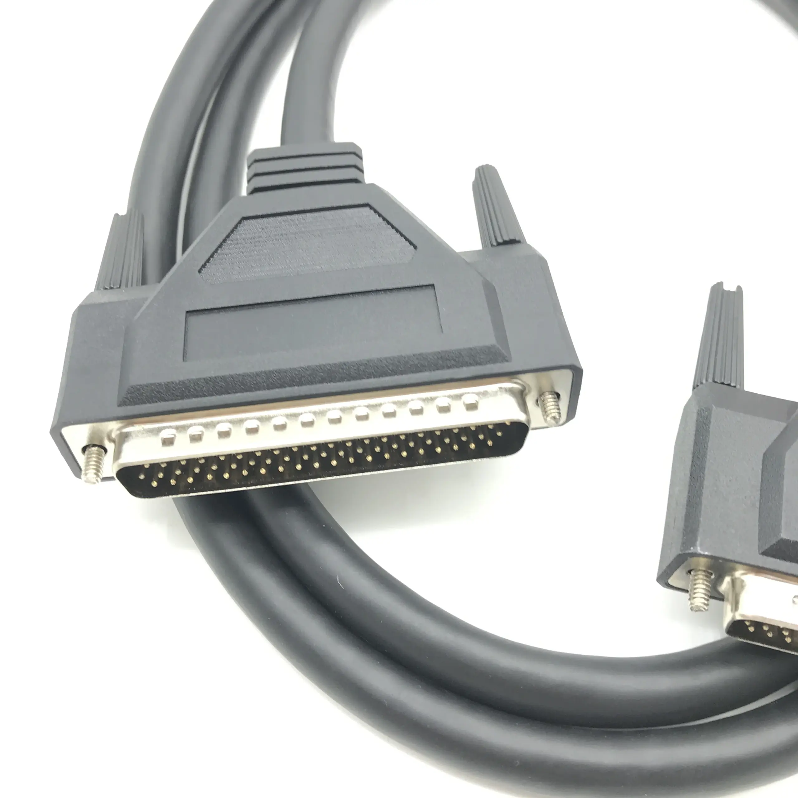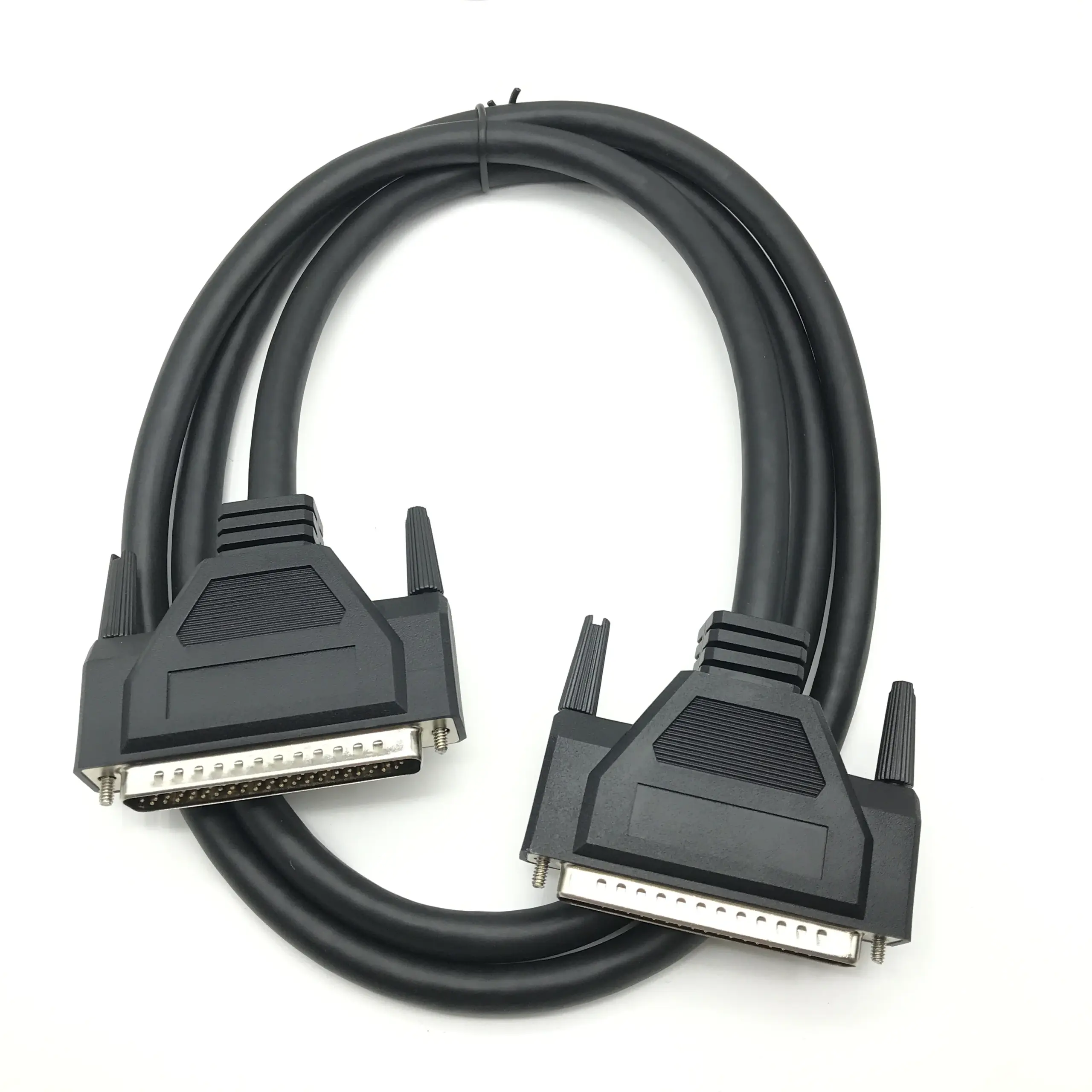 This all-copper DB62 Male to Male data cable features a durable, professional design with a sleek black finish and textured, matte plastic connectors. Available in customizable lengths of 1.5 meters, 3 meters, and 5 meters, it offers reliable 62-pin pin-to-pin data transmission. The connectors are equipped with metal contacts and securing screws for a stable connection. Constructed for high-quality performance and compatibility with DB62 ports, this cable is ideal for professional data transfer applications, ensuring durability and precise transmission in demanding environments.