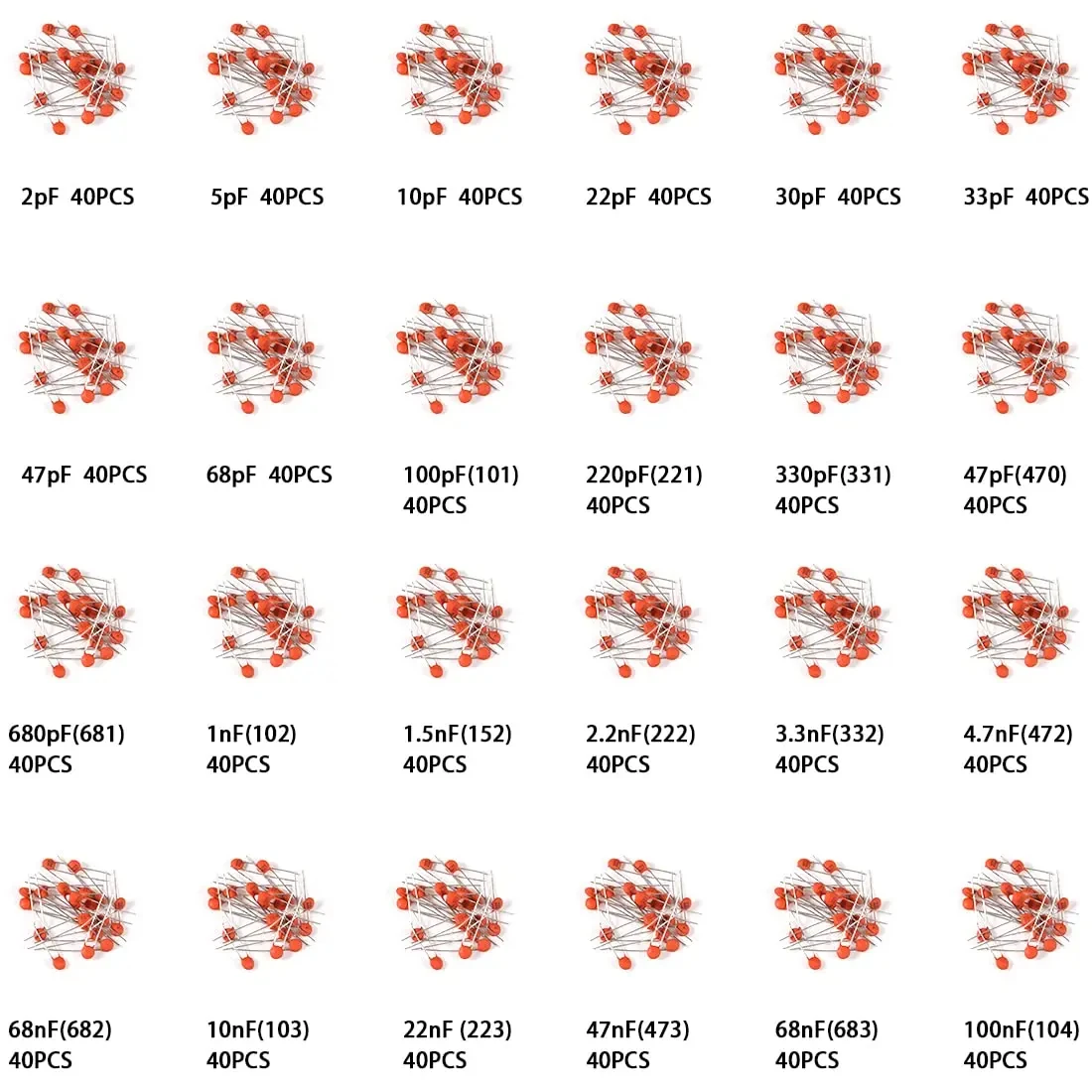 - Capacitors: 120 electrolytic capacitors (16V-50V, 12 values), 310 ceramic capacitors (50V, from 1pF to 0.1uF), in assorted sizes for filtering and timing applications.