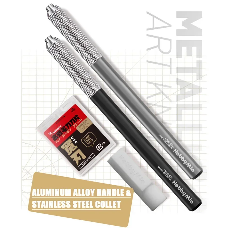 Experience the precision and durability of this all-metal Hobby Mie Pen Set, designed specifically for hobbyists, model makers, and DIY enthusiasts. The set features a sturdy handle made from a combination of aluminum alloy and stainless steel, offering superior grip and longevity. With 30 spare high carbon steel blades included, measuring 42mm by 6mm with a thickness of 0.45mm, and a 32.8-degree cutting angle, every cut is clean and accurate. Its sleek, professional design ensures that this pen set is perfect for craft, model, or precision cutting projects. Let your creative ideas come to life with reliability and style.