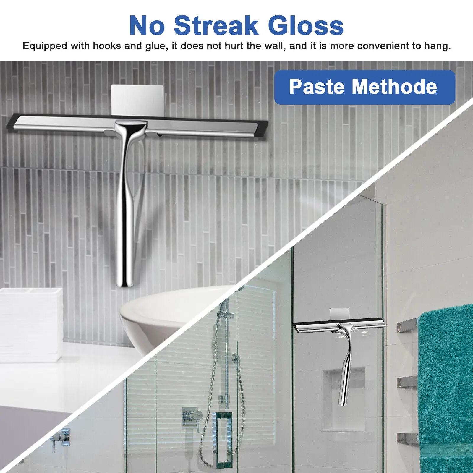 The All-Purpose Shower Squeegee is expertly crafted from sturdy aluminum and plastic, featuring a soft rubber scraping edge for effective cleaning. Measuring 25 cm in length and 18 cm in width, it weighs only 54 grams, making it easy to handle. The sleek silver finish and mirror-polished surface not only enhance its aesthetic appeal but also ensure a streak-free clean. Designed with a comfortable non-slip handle, this durable squeegee is perfect for cleaning shower doors, tiles, mirrors, and windows, making it a versatile addition to your cleaning tools. Enjoy effortless cleaning with this stylish and functional tool.