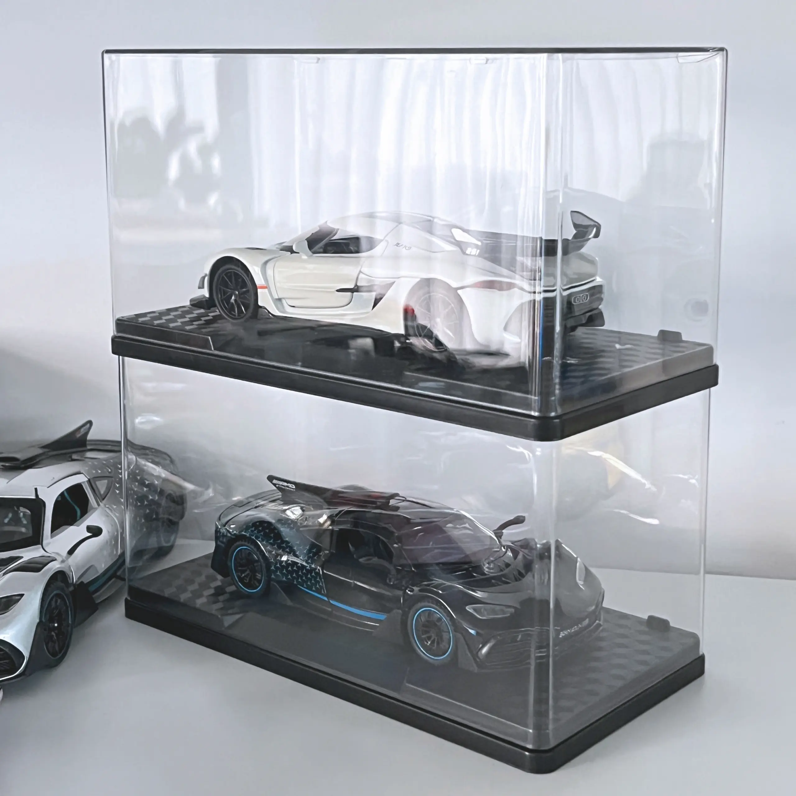 Imagine showcasing your prized 1:24 or 1:22 scale alloy car models within this beautifully crafted display box. Its high transparency design ensures an unobstructed 360° view, revealing every aerodynamic detail, sleek contours, and stylish features of your models. The dustproof construction keeps your collectibles pristine, while the durable, eco-friendly materials guarantee longevity. Featuring a carbon fiber base with a checkered racing pattern, this display box evokes a sporty vibe perfect for racing enthusiasts. Its stackable design allows you to build a personalized wall of your collection, ideal for gifting, holiday displays, or simply elevating your display space. Whether for your own collection or as a premium gift, this elegant case combines practicality with style.