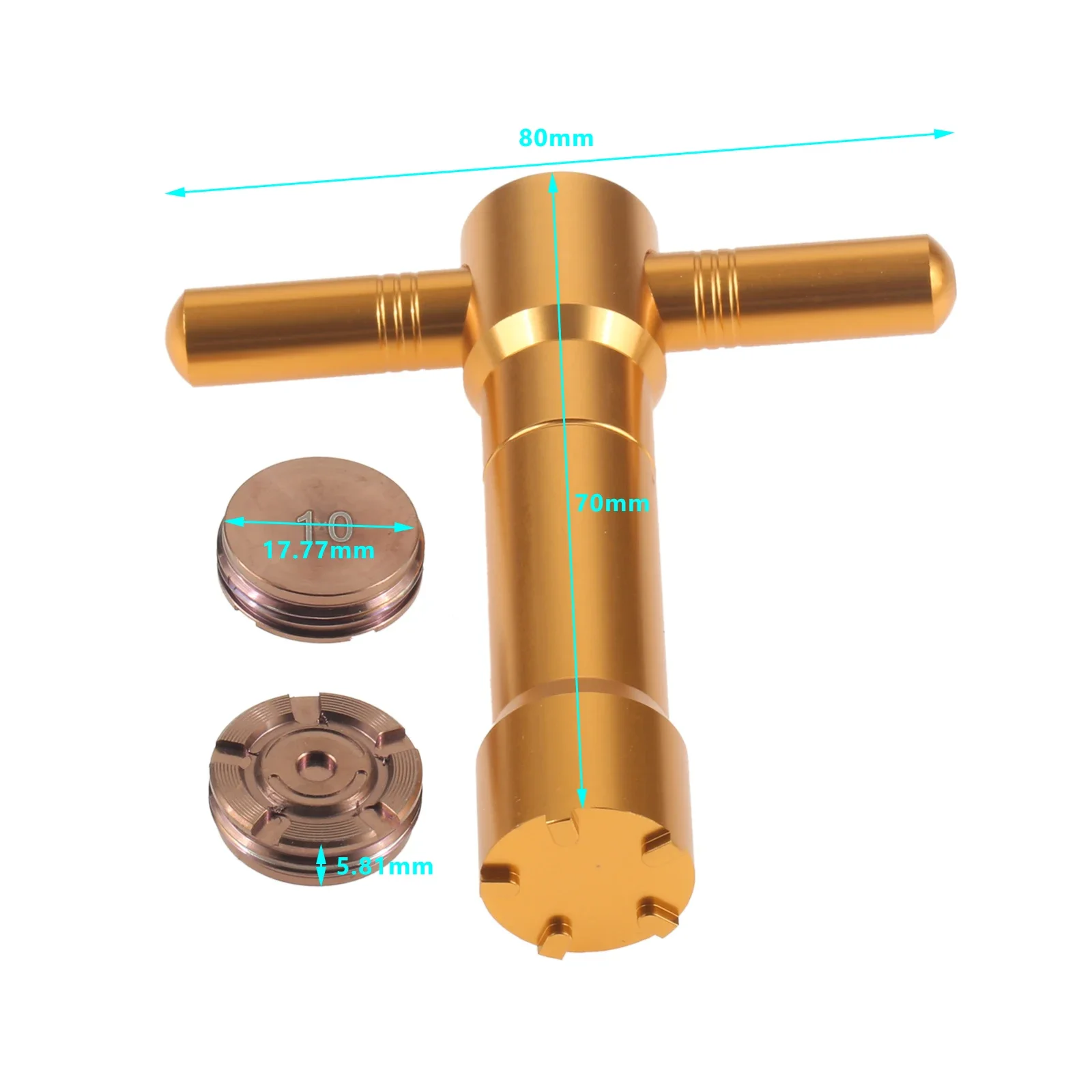 - Lightweight wrench measures 80 x 70mm, crafted with high-shine metallic material for durability and sleek appearance.