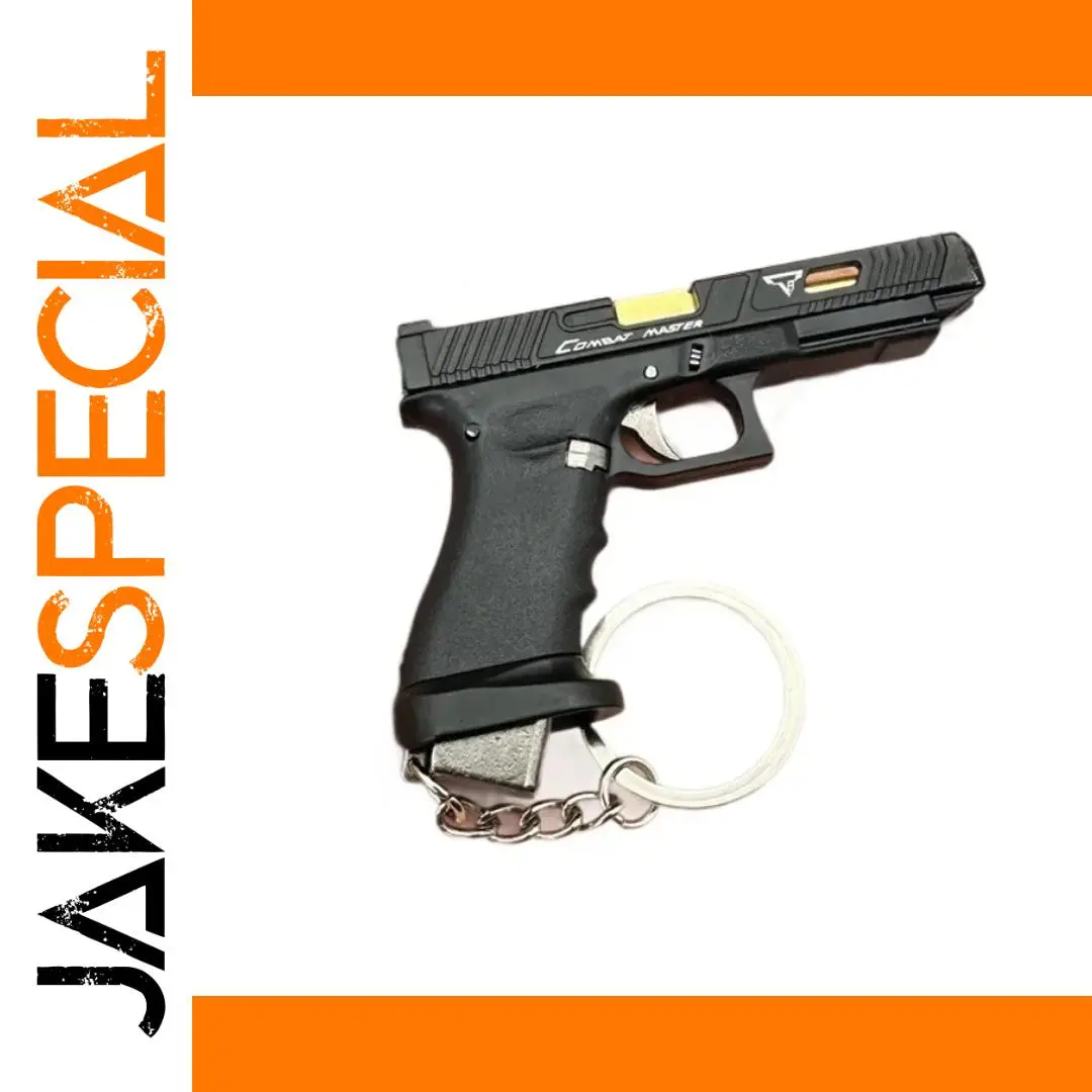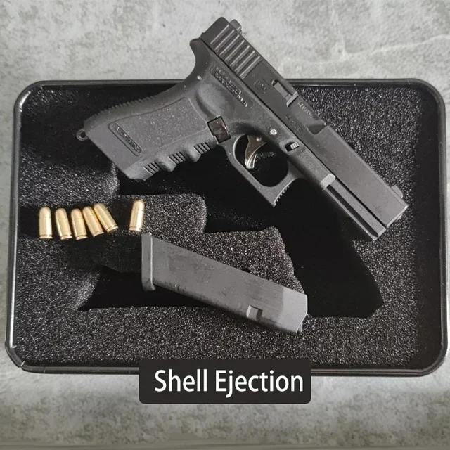 Experience the thrill of owning a high-quality miniature replica of the G34 pistol with this alloy model. Designed in a 1:3 scale, it combines realistic details with durable metal construction. Its sleek black finish, accented with metallic silver highlights, mimics the modern look of a real firearm. The textured grip offers a tactile feel, while features like the ridged slide serrations, “COMBAT MASTER” label, and a small emblem enhance its authenticity. The model supports shell ejection and supports assembly and disassembly, allowing for an engaging experience. Perfect as a display piece or functional keychain, it’s an ideal gift for gun lovers and collectors eager to showcase their passion for firearm craftsmanship. Its compact size makes it convenient for everyday carry or decorative use.