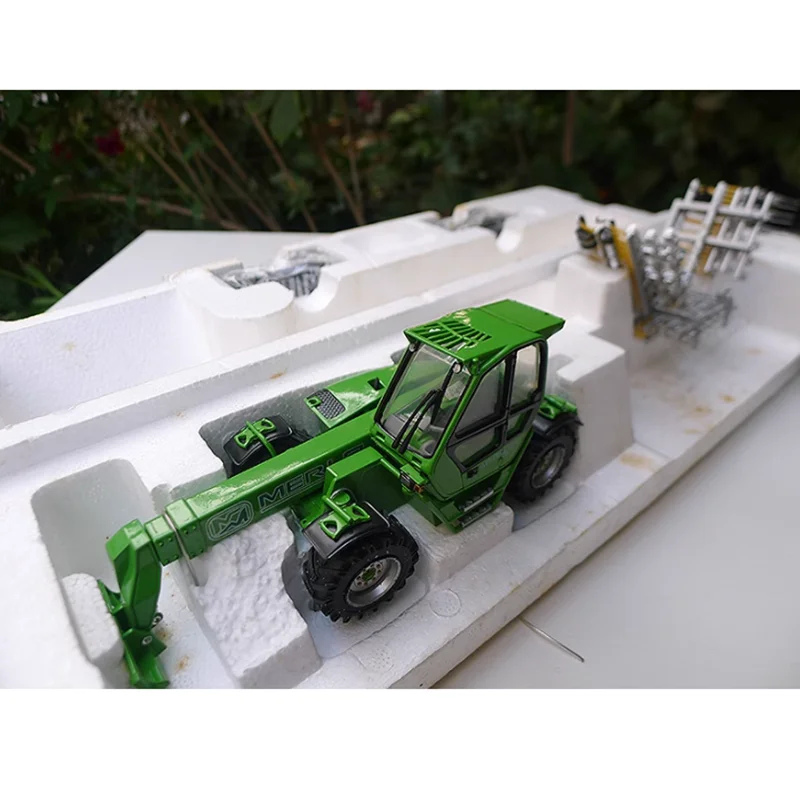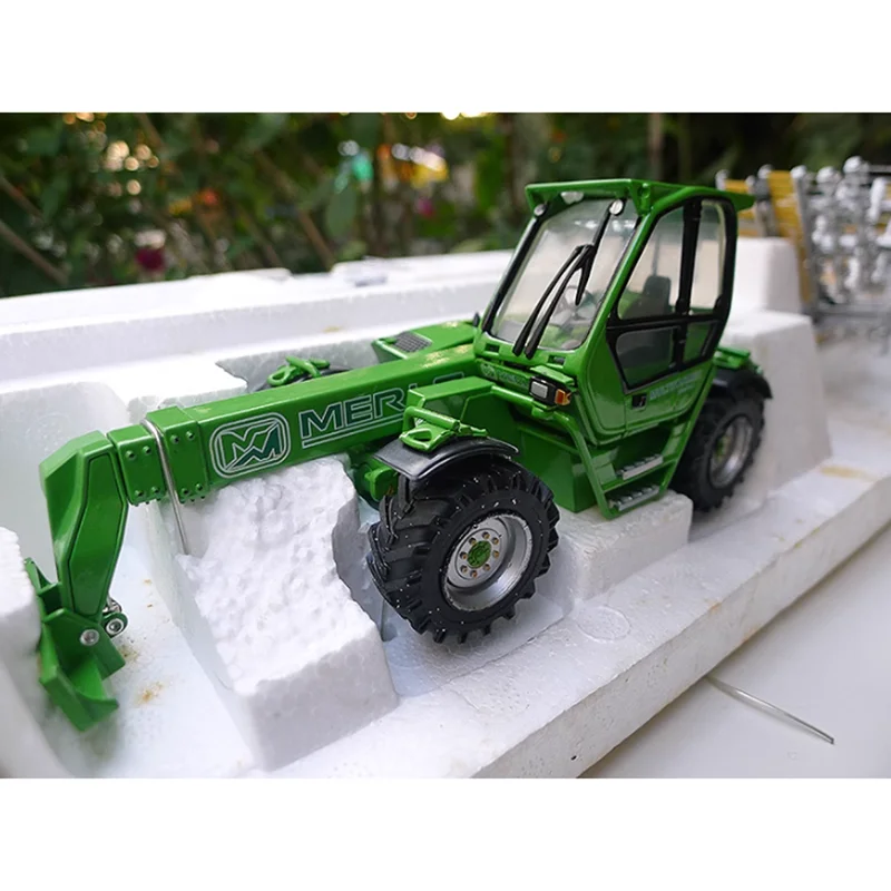Experience the craftsmanship of this meticulously crafted 1:32 scale alloy model of the Merlo Multifarmer 30.9 MCSS high-altitude engineering vehicle. Measuring 25 cm long, 8 cm wide, and 12 cm high, this model captures every detail, from textured surfaces to realistic markings, making it a striking decorative piece. Its sleek metallic green finish adds modern industrial appeal, perfectly suited for display in offices, study rooms, bars, or as a collector’s item. The articulated long arm, visible joints, and detailed wheels bring true-to-life realism. Designed for adult enthusiasts, this non-electric, non-battery model is an ideal gift or collectible, offering a durable and authentic representation of this high-performance equipment. Experience a blend of aesthetics and craftsmanship with this premium piece.