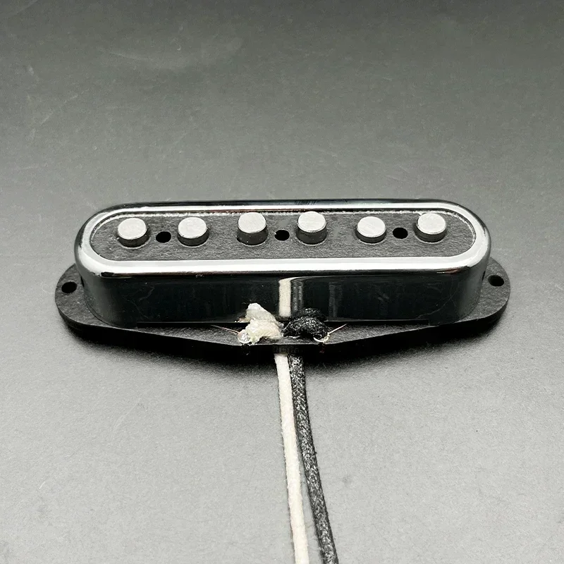 The Alnico 2 Staggered ST Style Electric Guitar Pickup set includes three single coil pickups designed for the neck, middle, and bridge positions. Each pickup features a durable Alnico 2 magnet and staggered top pole pieces, providing enhanced tonal range. The pickups offer a pole spacing of 50mm for the neck and middle positions, and 52mm for the bridge, with resistances of 5.4K (Neck), 5.4K (Middle), and 5.6K (Bridge) with a tolerance of 0.5K. Constructed with a black fiber bobbin and a shiny chrome cover, these pickups come with a waxed cloth cable and include 6 mounting screws for easy installation.