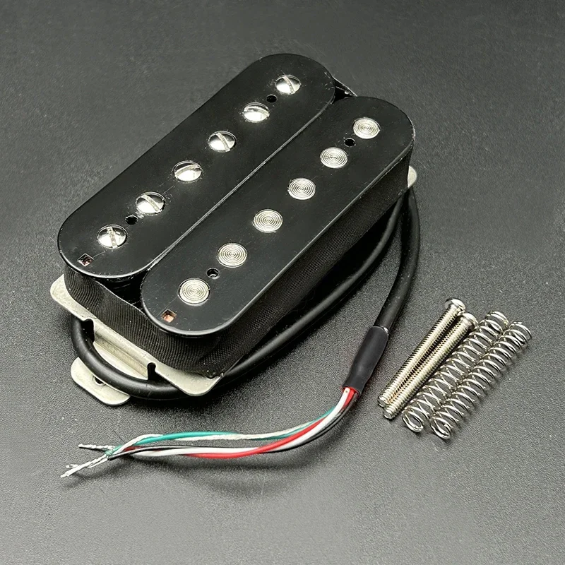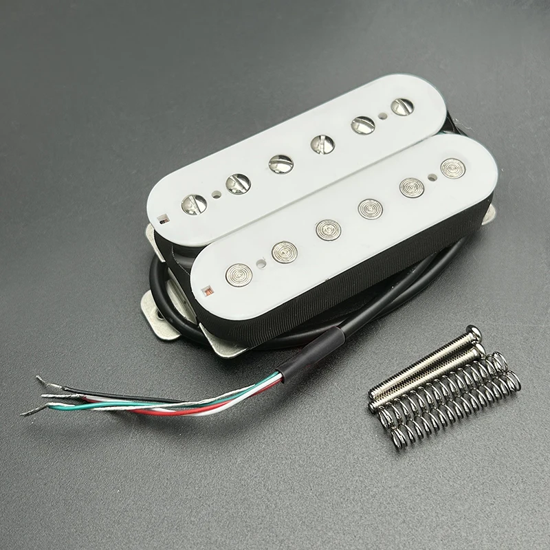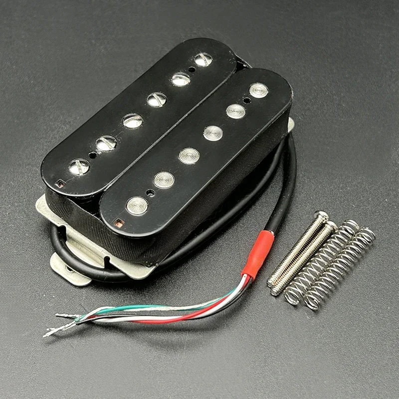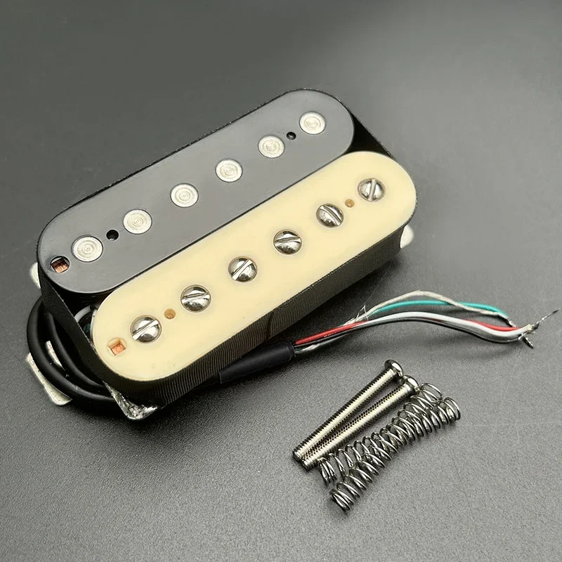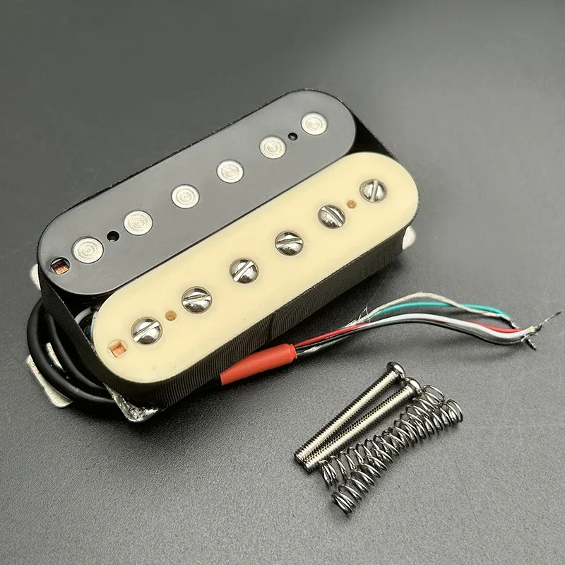 Elevate your electric guitar's sound with the Alnico 5 Electric Guitar Pickup. This double coil humbucker is expertly crafted for musicians seeking high output and remarkable clarity. It features solid nickel pole pieces and an Alnico 5 magnet, delivering robust tone and response. The bobbin is stylishly designed in black with a chic white base, making it both functional and visually appealing. The included PVC wiring and flexible output options enhance customization, allowing you to tailor your sound. Durable screws and springs are provided for hassle-free installation, making this pickup ideal for most double humbucker electric guitars. Transform your playing experience today!