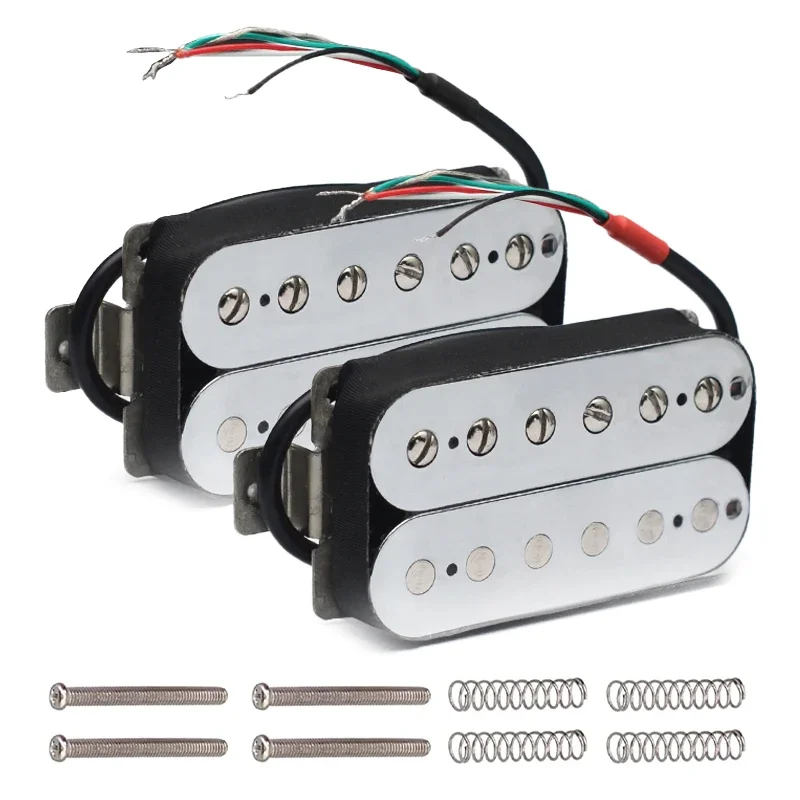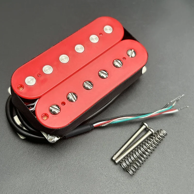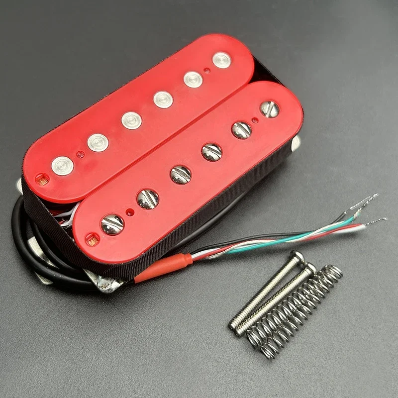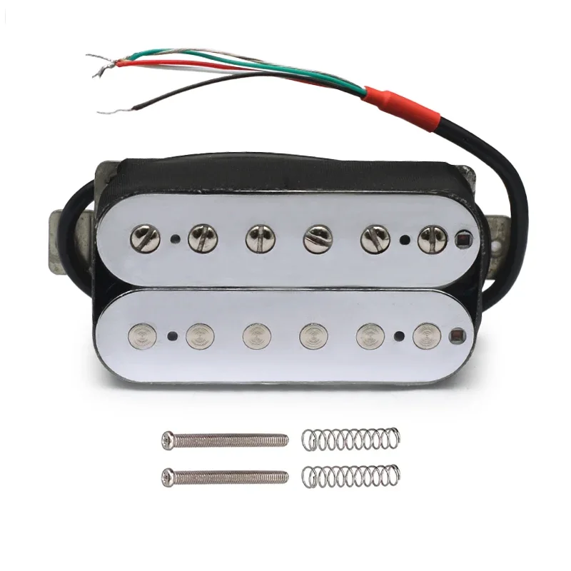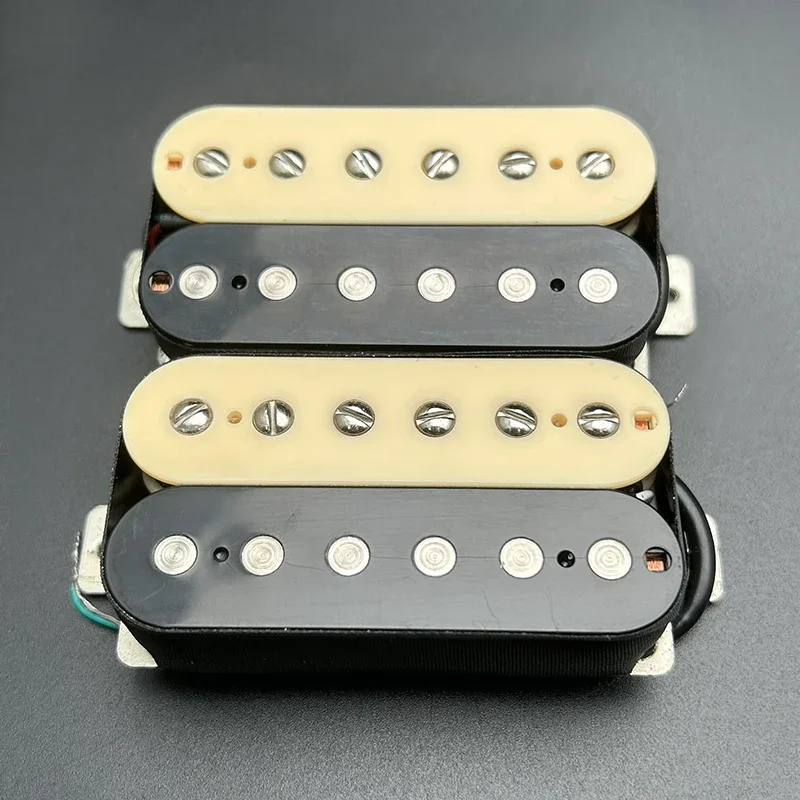 Elevate your electric guitar's sound with the Alnico 5 Electric Guitar Pickup. This double coil humbucker is expertly crafted for musicians seeking high output and remarkable clarity. It features solid nickel pole pieces and an Alnico 5 magnet, delivering robust tone and response. The bobbin is stylishly designed in black with a chic white base, making it both functional and visually appealing. The included PVC wiring and flexible output options enhance customization, allowing you to tailor your sound. Durable screws and springs are provided for hassle-free installation, making this pickup ideal for most double humbucker electric guitars. Transform your playing experience today!