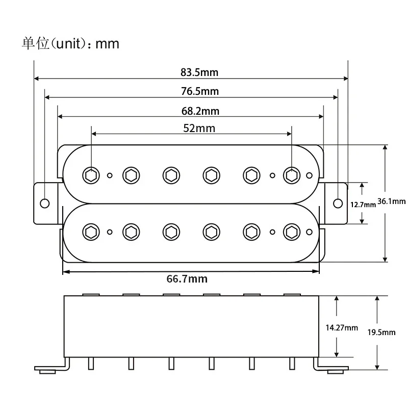 - Dimensions include a pole piece spacing of 52mm with smooth sides and rounded edges, ensuring seamless integration into your guitar’s body for a clean, professional look.