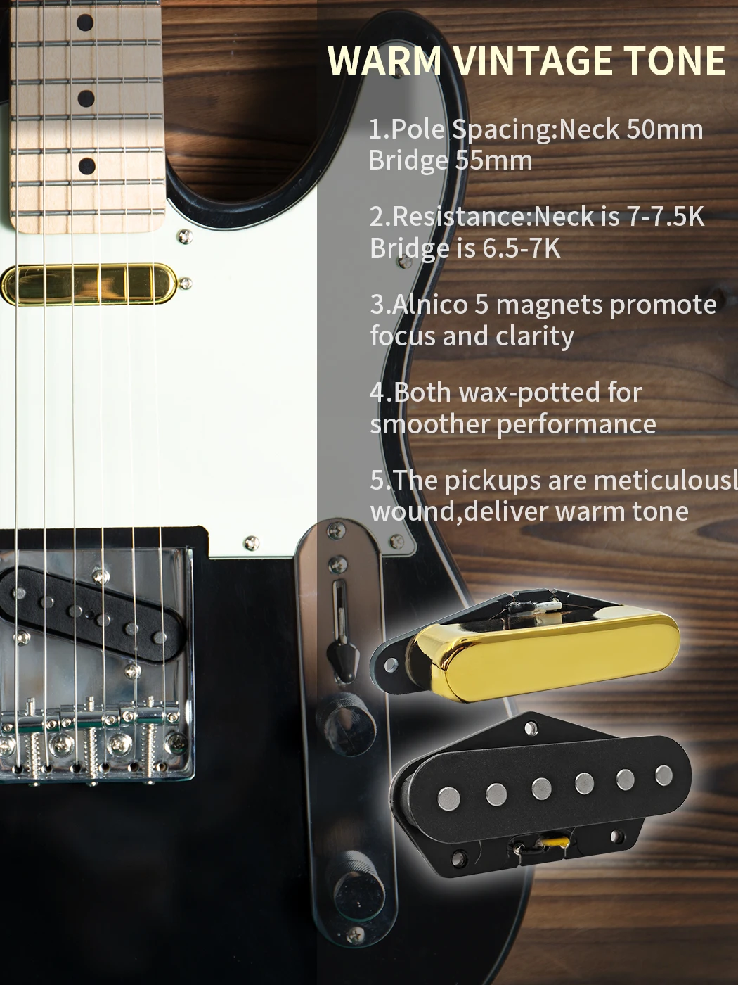 Enhance your guitar’s tone and visual appeal with this high-quality set of pickups. Perfect for guitarists aiming for warm, soulful sounds combined with a sleek modern look, these pickups are easy to install and built to last. Whether you're recording, performing, or practicing, they will ensure your instrument sounds its best, inspiring your musical creativity. Don’t miss the chance to upgrade your guitar and experience richer sound and sophisticated style. Add these pickups to your collection today and elevate your playing experience!